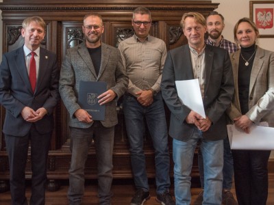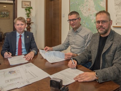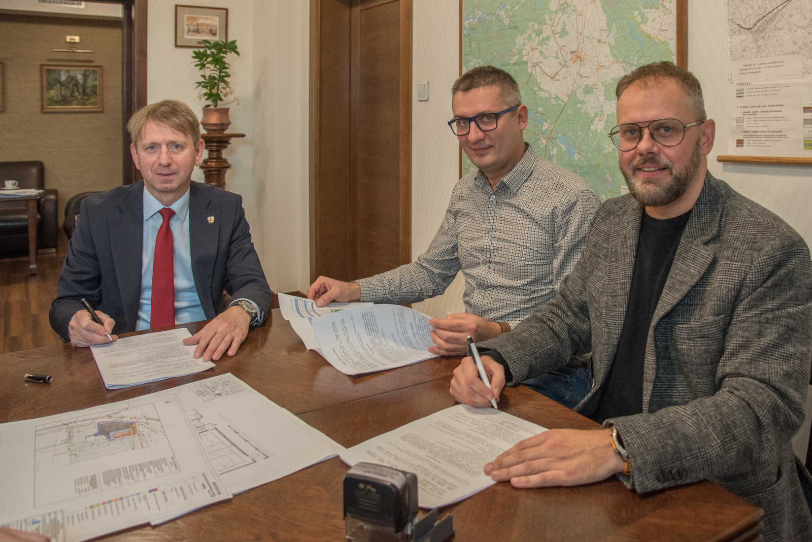 Dziś (13 listopada) Burmistrz Brus Witold Ossowski podpisał umowę z firmą PBHU OBIEKT Sp. z o.o. na budowę hali sportowej przy Szkole Podstawowej w Zalesiu.