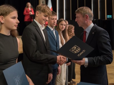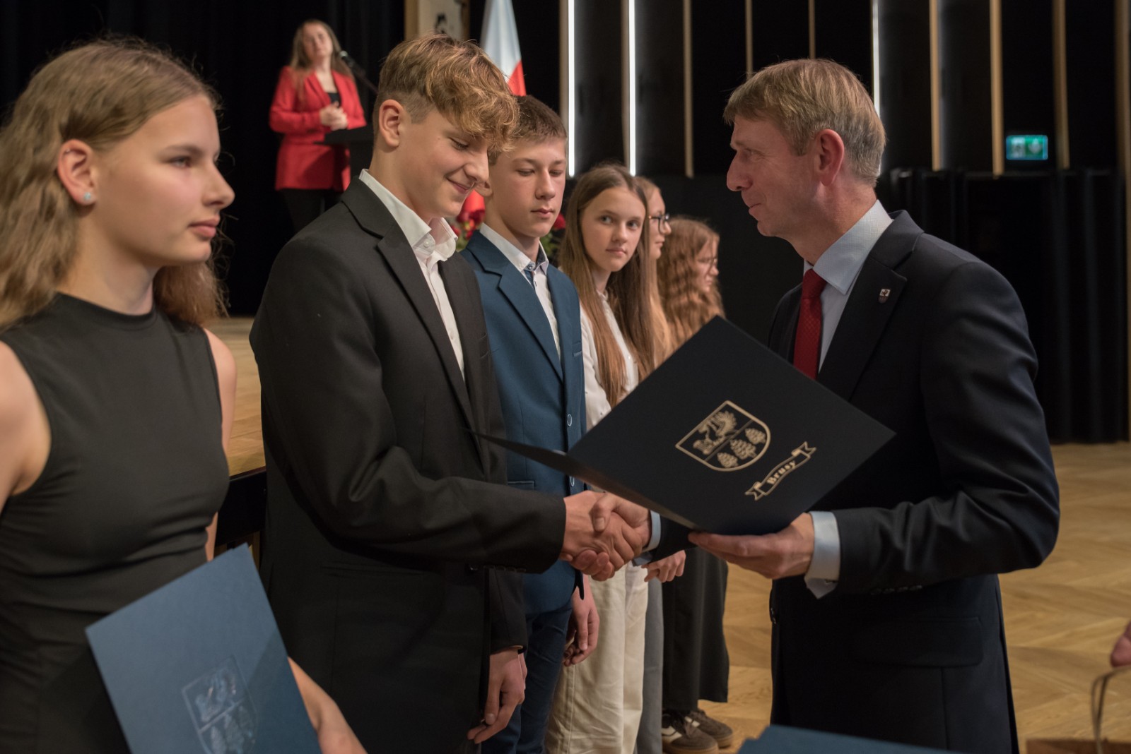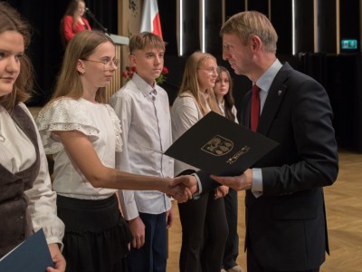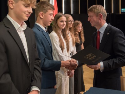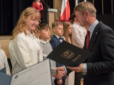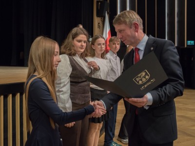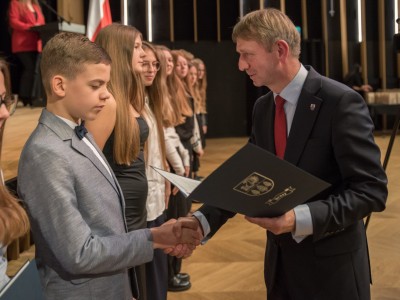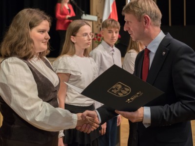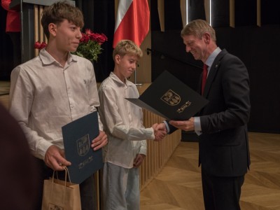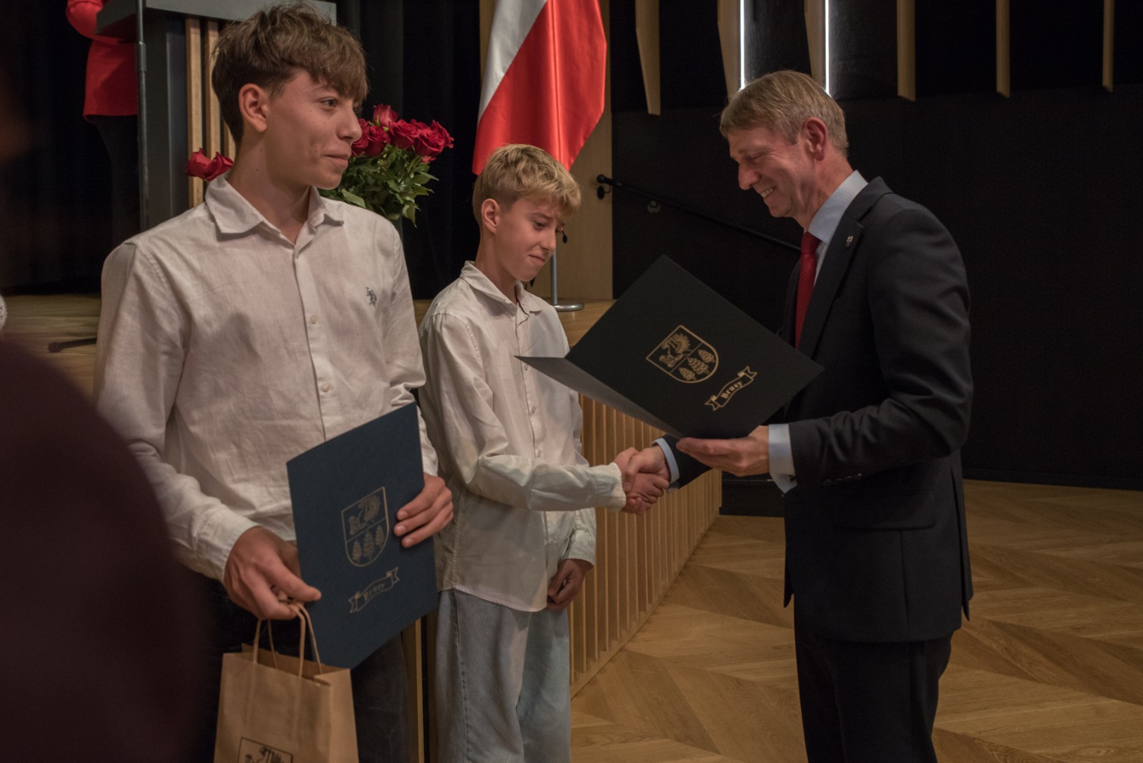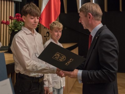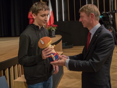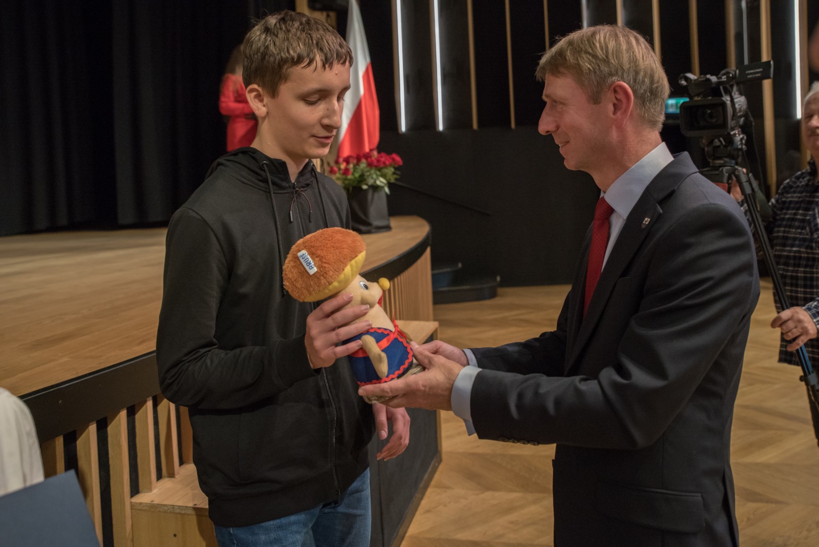 Gratulacje wraz z upominkiem odebrał także Szymon Piotr Warsiński, absolwent Szkoły Podstawowej w Lubni, laureat konkursów z matematyki i informatyki organizowanych przez Pomorskiego Kuratora Oświaty oraz laureat II stopnia XIX Olimpiady Informatycznej Juniorów, który ze względu na udział w obozie naukowym nie brał udziału w czerwcowej uroczystości wręczenia stypendium Burmistrza Brus ósmoklasistom.