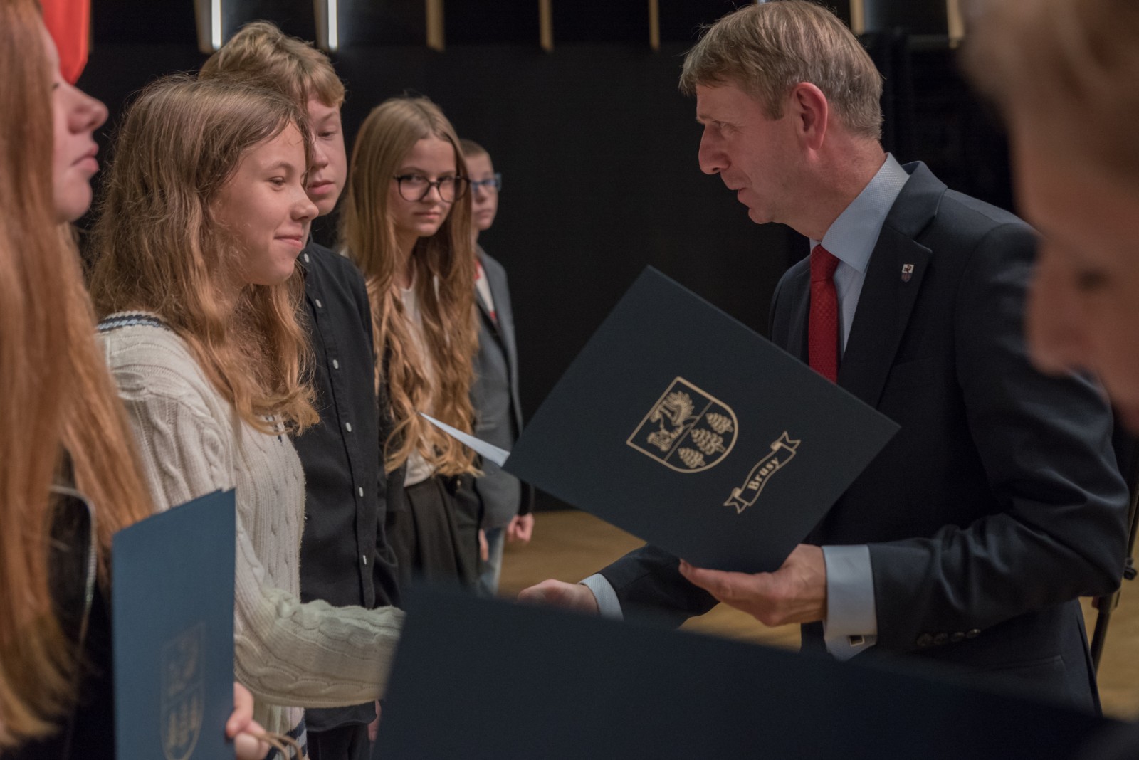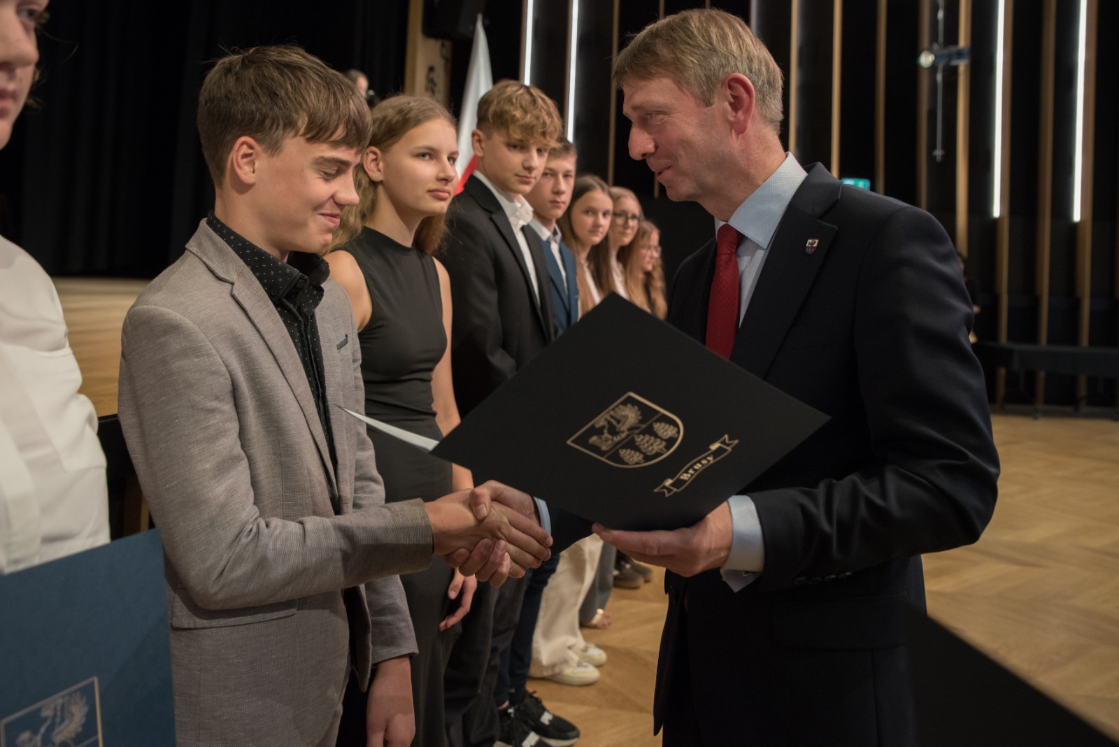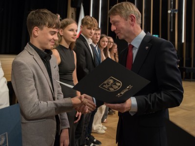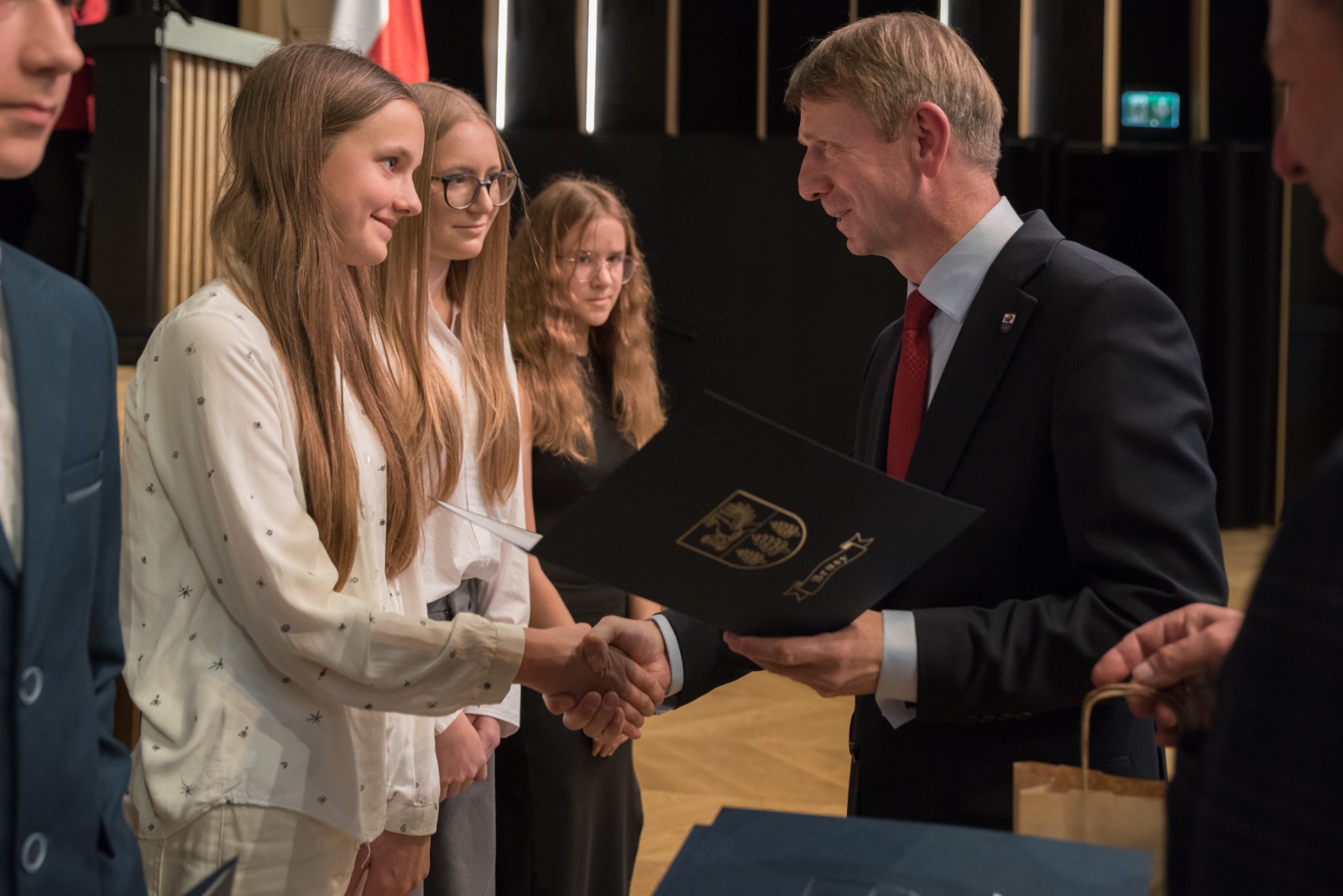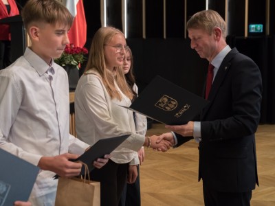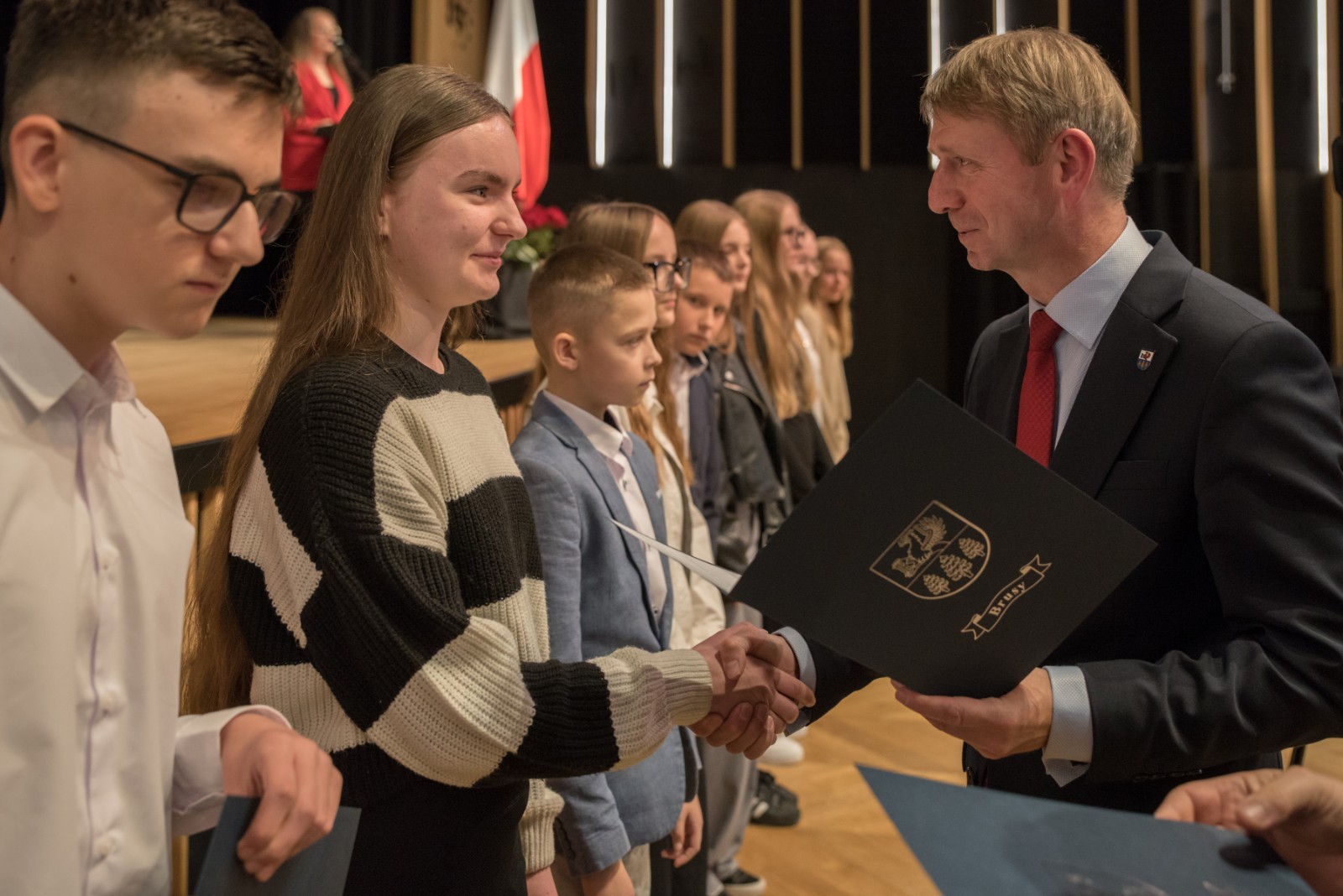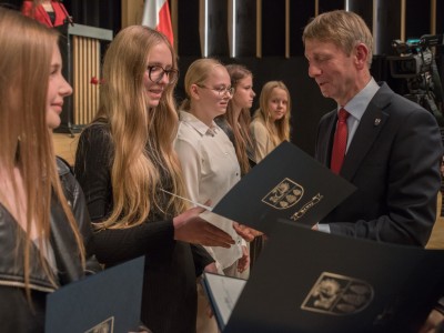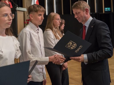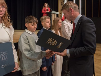 Gratulacje wraz z upominkiem odebrał także Szymon Piotr Warsiński, absolwent Szkoły Podstawowej w Lubni, laureat konkursów z matematyki i informatyki organizowanych przez Pomorskiego Kuratora Oświaty oraz laureat II stopnia XIX Olimpiady Informatycznej Juniorów, który ze względu na udział w obozie naukowym nie brał udziału w czerwcowej uroczystości wręczenia stypendium Burmistrza Brus ósmoklasistom.