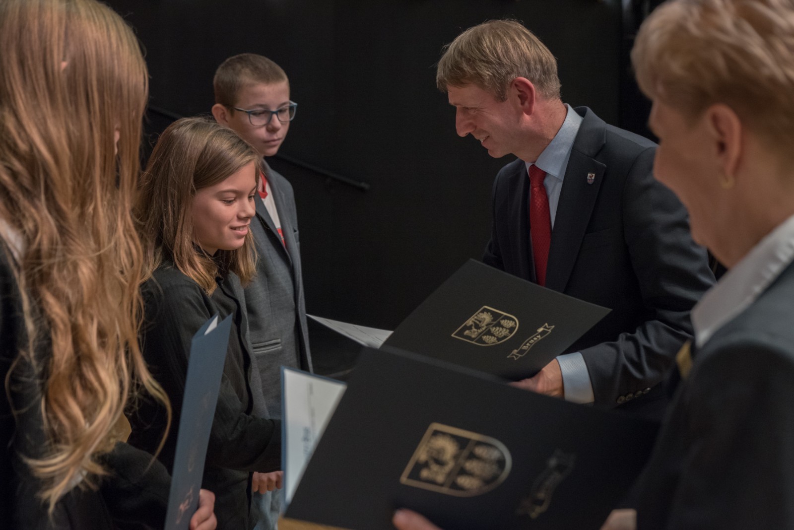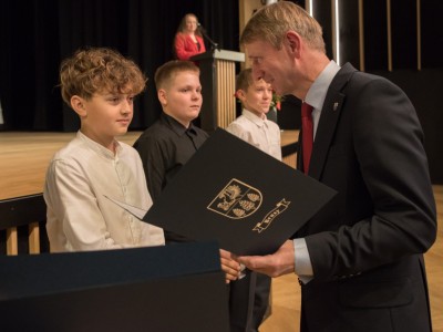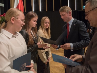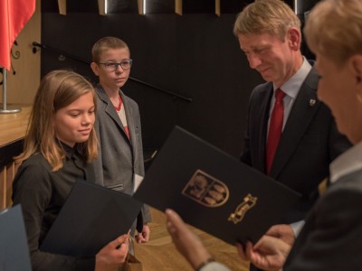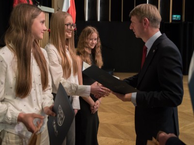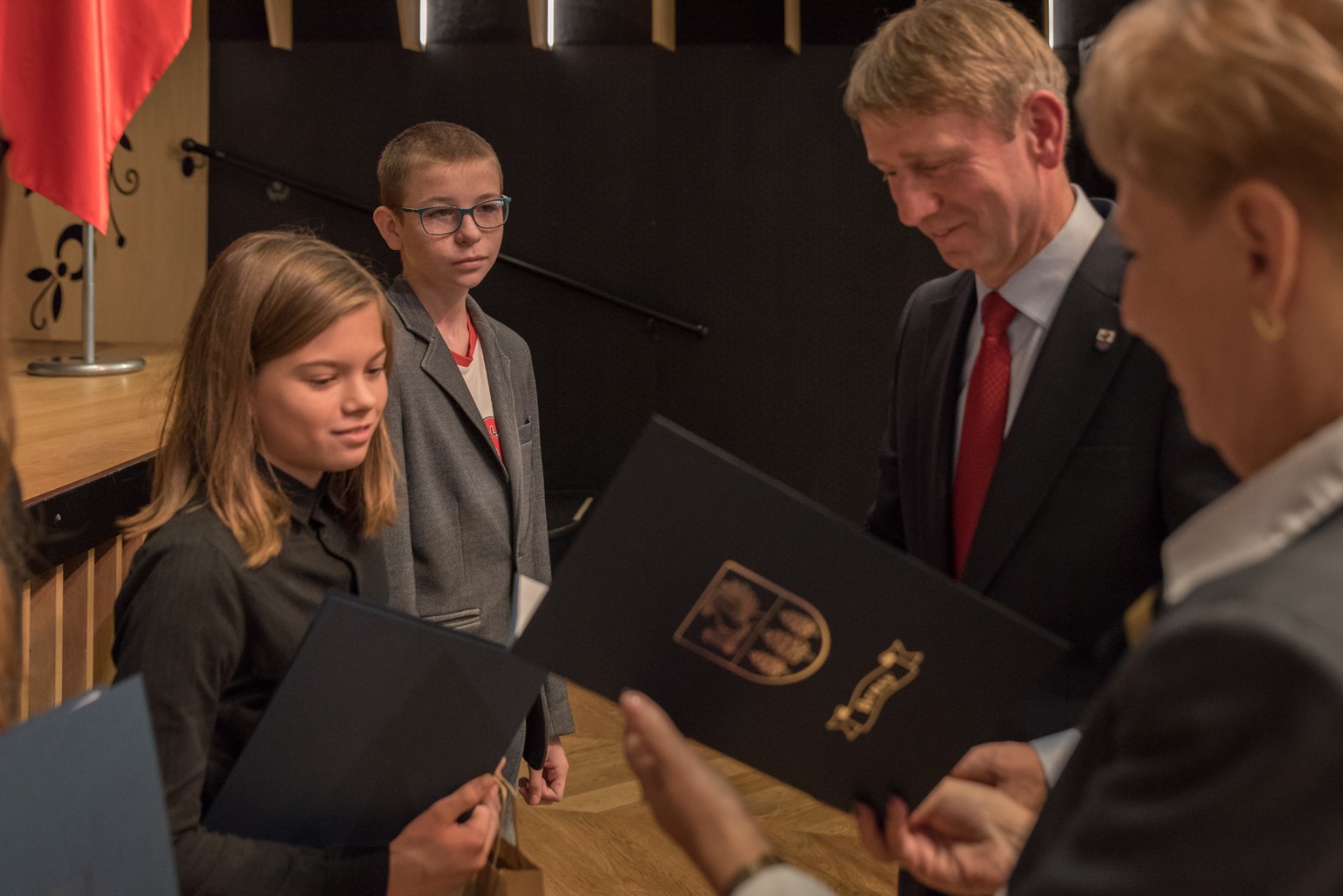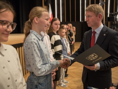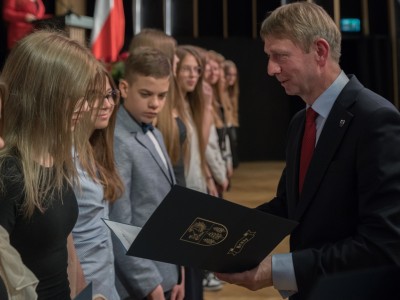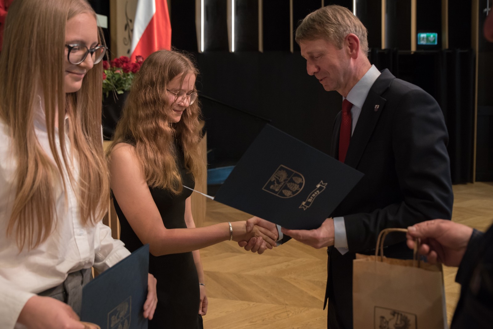 Gratulacje wraz z upominkiem odebrał także Szymon Piotr Warsiński, absolwent Szkoły Podstawowej w Lubni, laureat konkursów z matematyki i informatyki organizowanych przez Pomorskiego Kuratora Oświaty oraz laureat II stopnia XIX Olimpiady Informatycznej Juniorów, który ze względu na udział w obozie naukowym nie brał udziału w czerwcowej uroczystości wręczenia stypendium Burmistrza Brus ósmoklasistom.