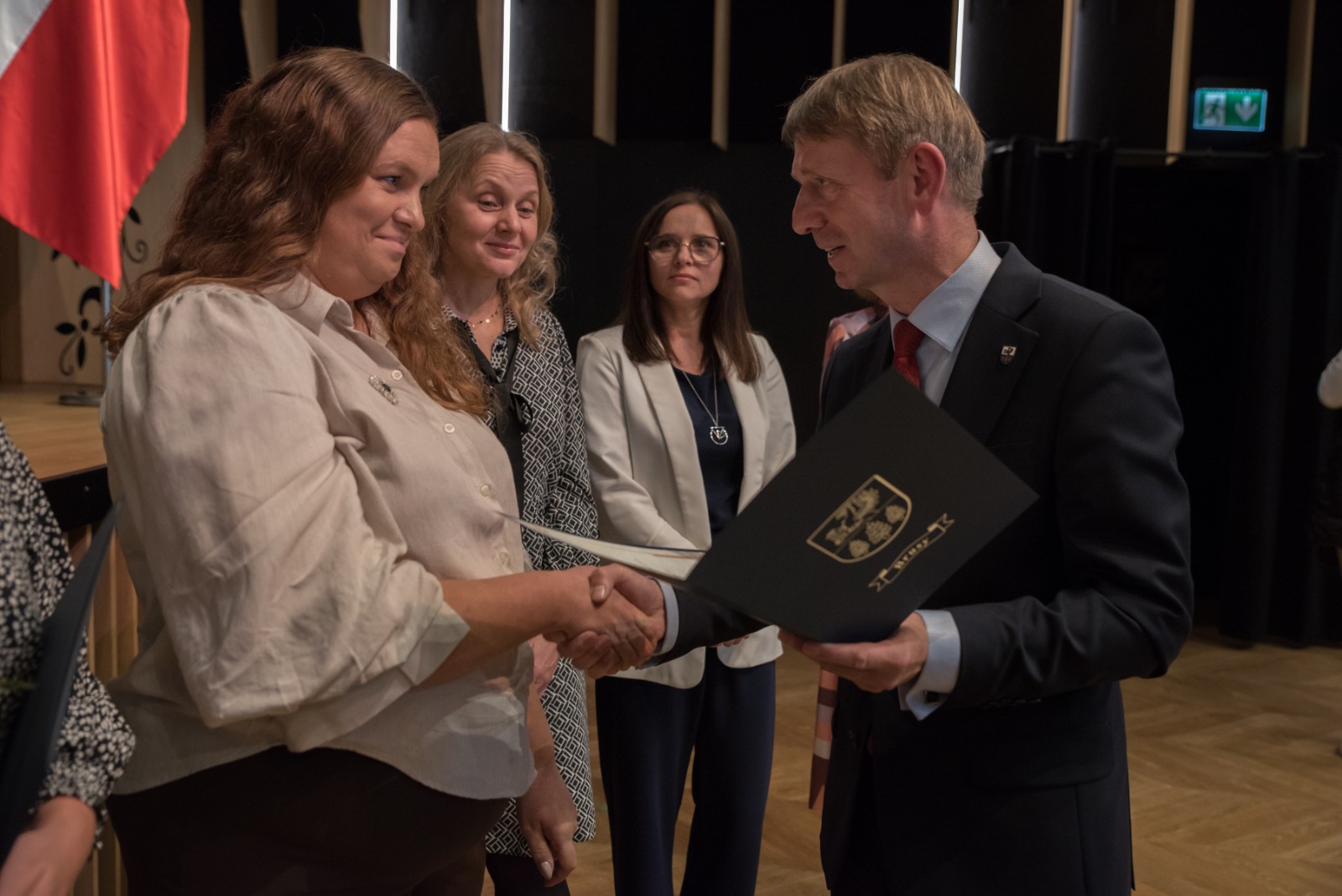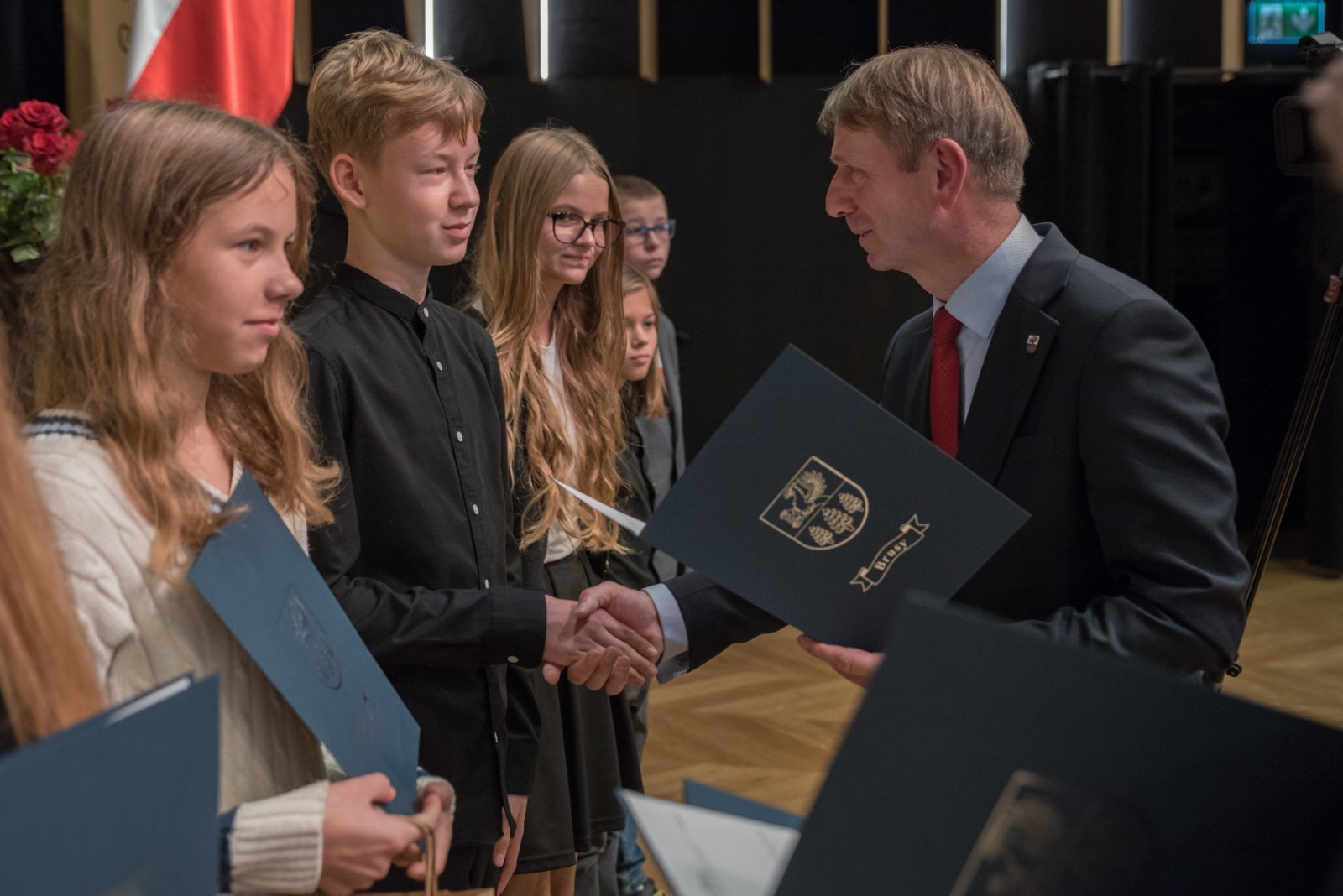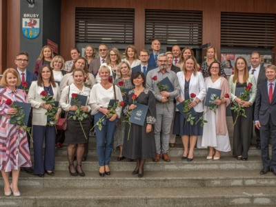Gratulacje wyróżnionym złożyli również Michał Kin, przewodniczący Rady Miejskiej w Brusach, Albin Kiedrowski, przewodniczący Komisji Oświaty, Kultury i Sportu Rady Miejskiej w Brusach oraz Jacek Bruski, dyrektor Gminnego Zarządu Oświaty.
