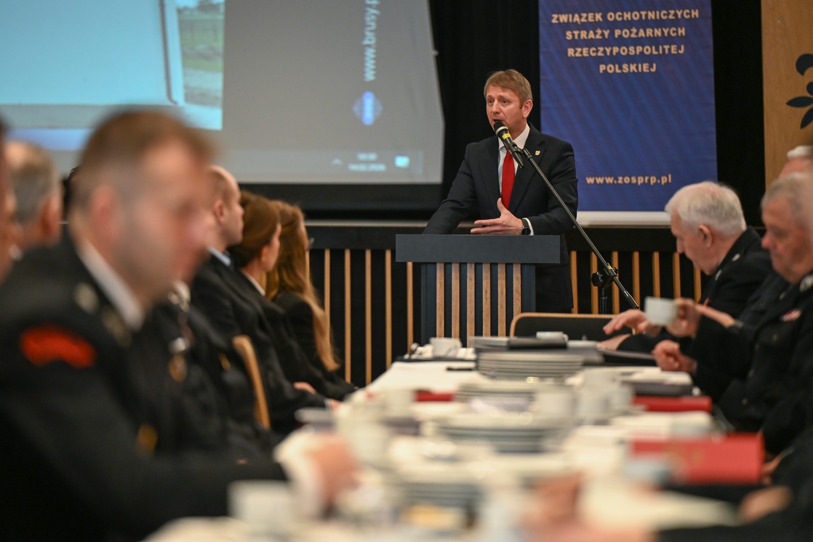 Spotkanie oficjalnie otworzył druh Marek Buza, prezes Zarządu Wojewódzkiego ZOSP RP woj. pomorskiego. Bezpośrednio po nim głos zabrał burmistrz Witold Ossowski, który w swoim wystąpieniu podkreślił kluczową rolę ochotniczych straży pożarnych w systemie bezpieczeństwa lokalnego. Zwrócił uwagę na konsekwentnie realizowaną w gminie politykę inwestycyjną — obejmującą zarówno budowę nowych remiz strażackich, jak i modernizację oraz rozbudowę istniejących strażnic. Jak zaznaczył, nowoczesna infrastruktura i odpowiednie zaplecze techniczne przekładają się bezpośrednio na sprawność działania jednostek oraz komfort służby druhen i druhów. Zapewnił również o dalszym wsparciu samorządu dla rozwoju OSP.