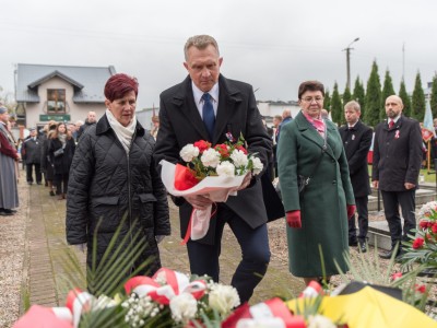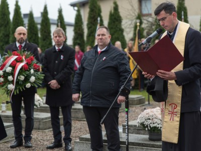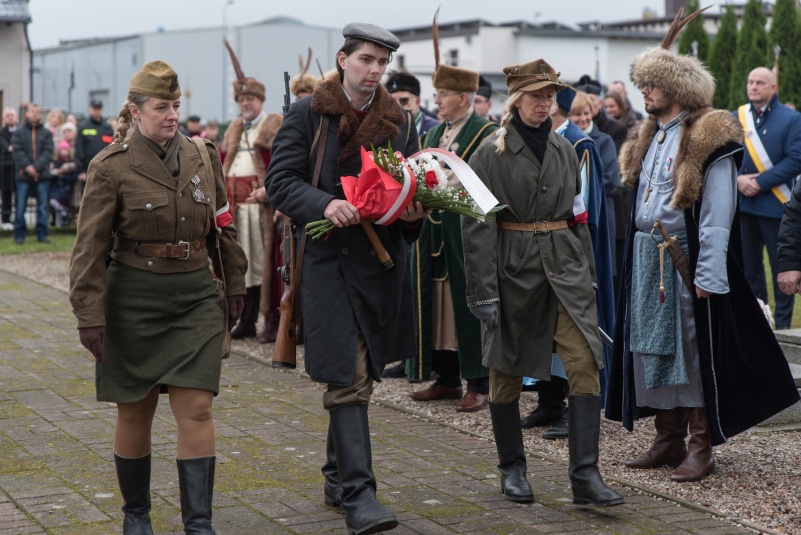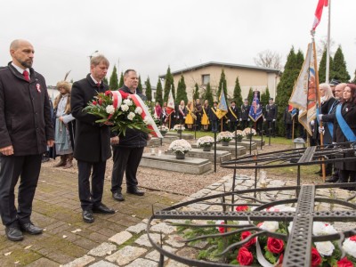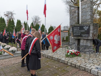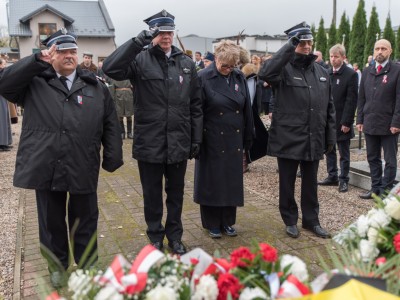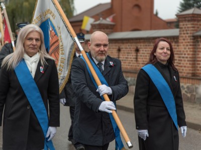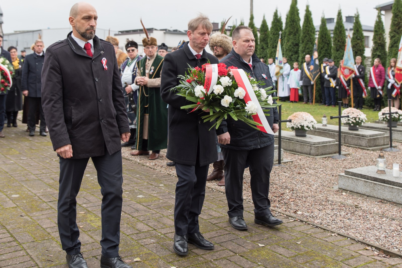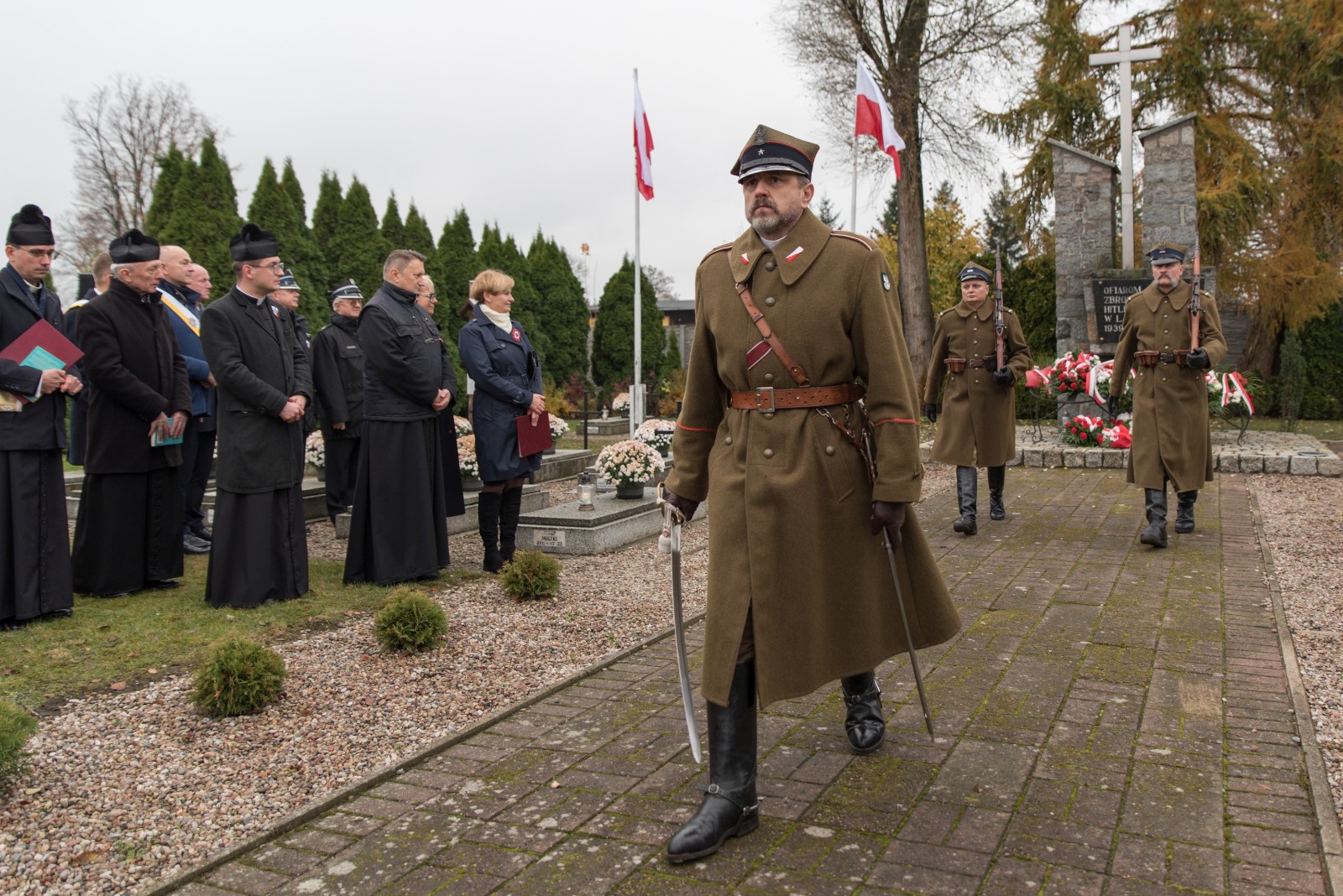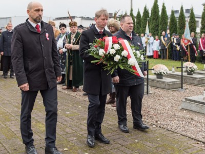 Po mszy uczestnicy udali się w przemarszu prowadzonym przez orkiestrę na cmentarz ofiar zbrodni hitlerowskich, gdzie odbyła się dalsza część uroczystości. Wspólnie odśpiewano hymn państwowy, oddając hołd wszystkim, którzy walczyli o wolność i niepodległość Polski. Następnie złożono kwiaty i zapalono znicze przy pomniku ofiar II wojny światowej.