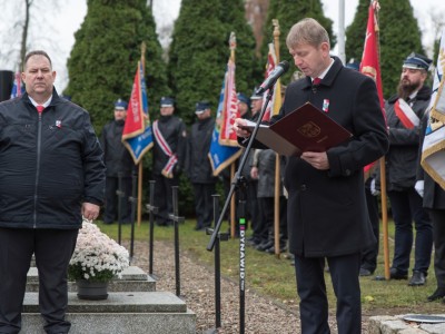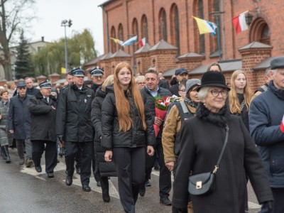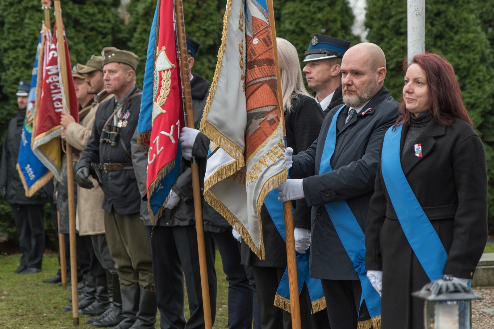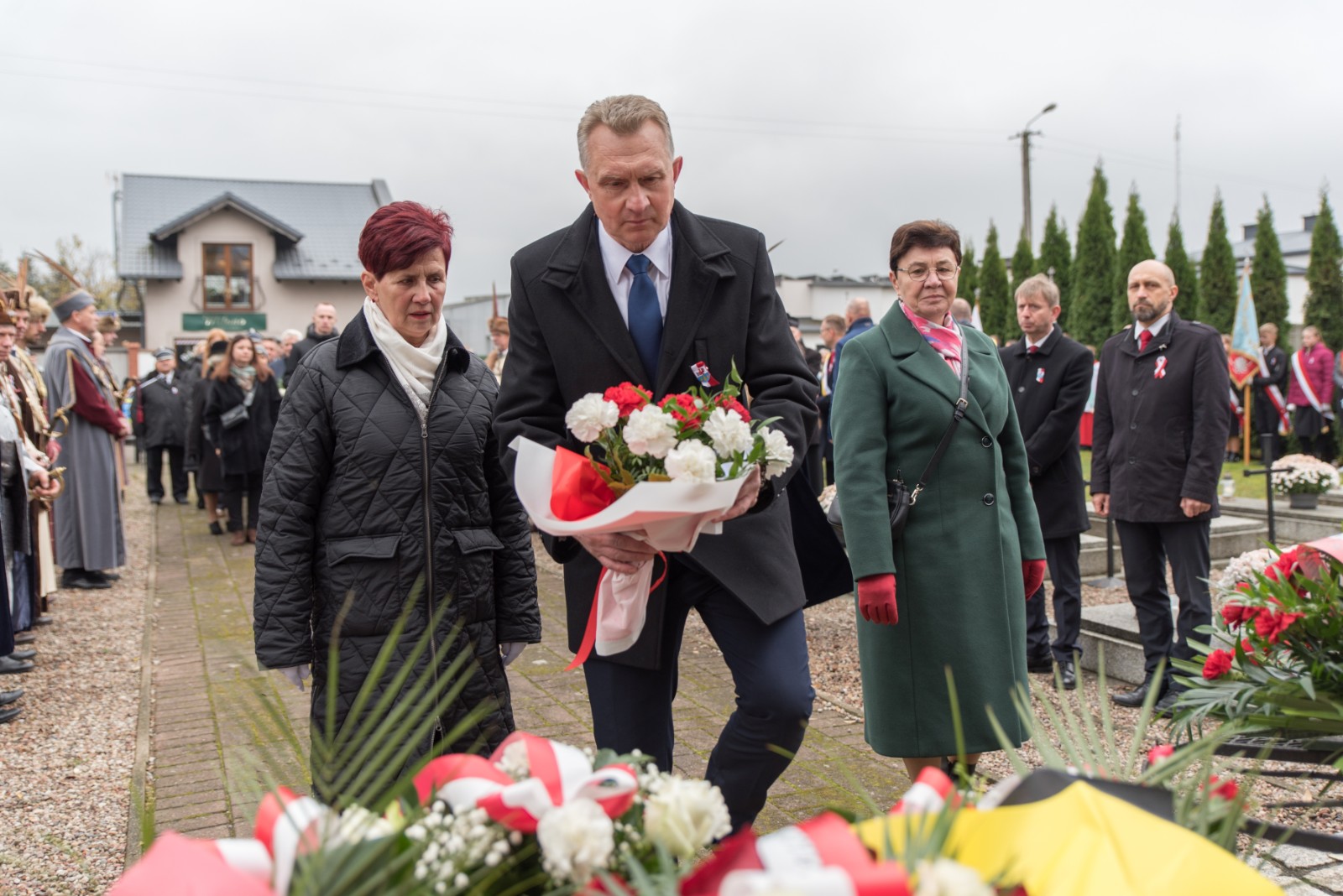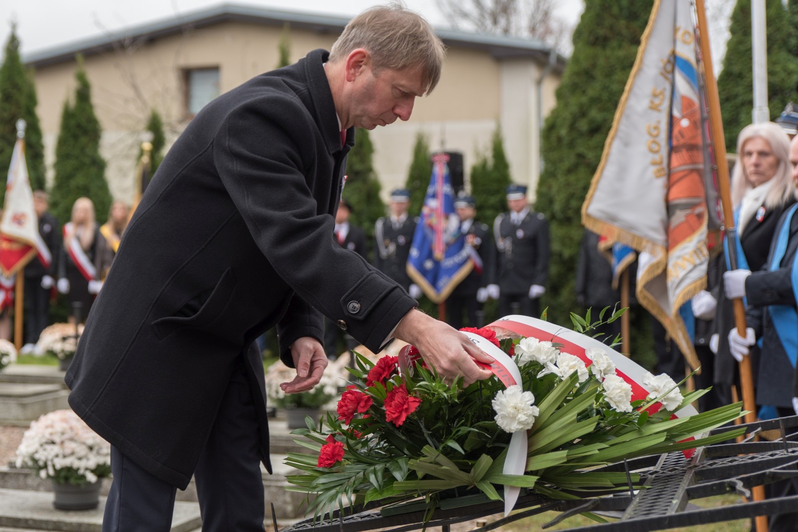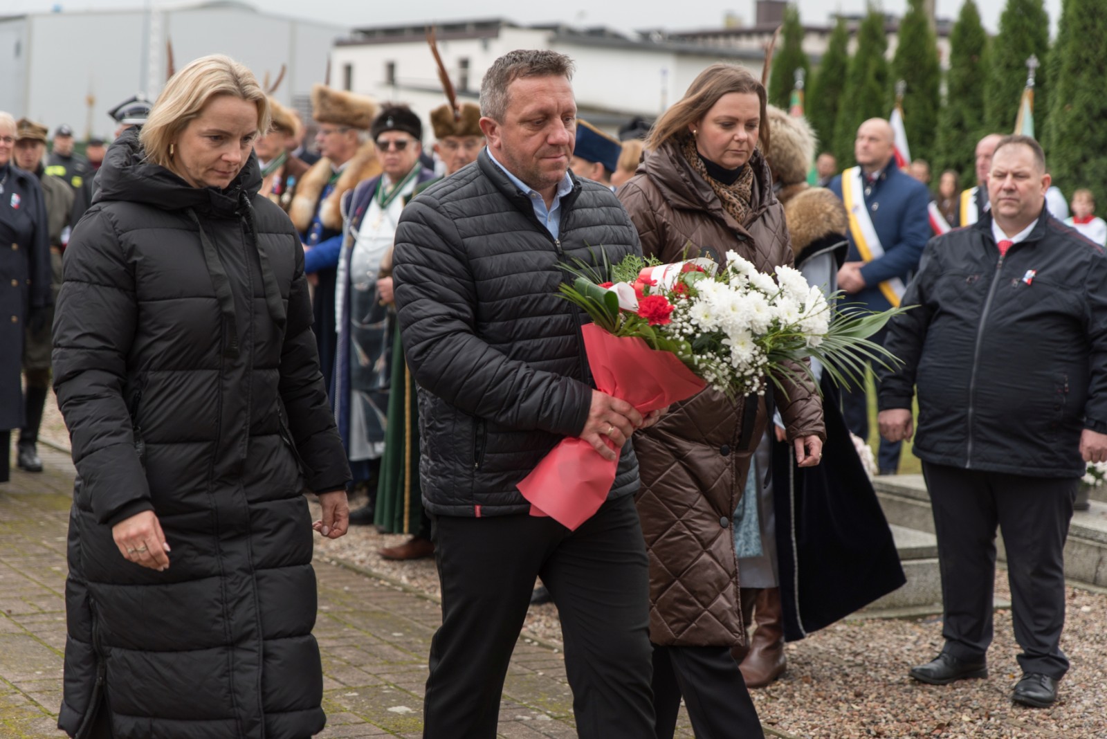 Po mszy uczestnicy udali się w przemarszu prowadzonym przez orkiestrę na cmentarz ofiar zbrodni hitlerowskich, gdzie odbyła się dalsza część uroczystości. Wspólnie odśpiewano hymn państwowy, oddając hołd wszystkim, którzy walczyli o wolność i niepodległość Polski. Następnie złożono kwiaty i zapalono znicze przy pomniku ofiar II wojny światowej.
