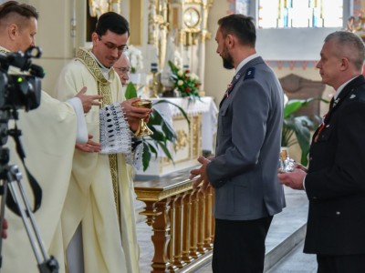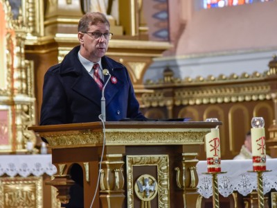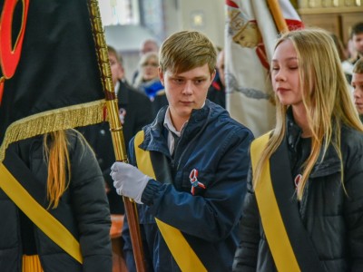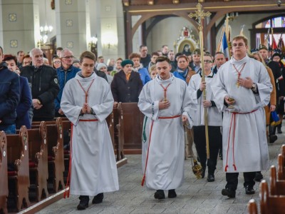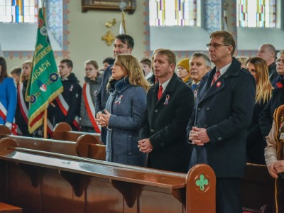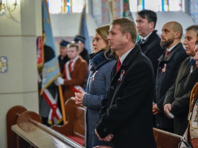 Mszy świętej przewodniczył ksiądz Rafał Grot. - Obojętnie, gdzie mieszkasz, obojętnie na jakiej szerokości geograficznej, wszędzie możesz być patriotą - cytował podczas homilii ksiądz Grot. Eucharystię współcelebrowali ksiądz proboszcz Jan Flaczyński, ksiądz prałat Zdzisław Wirwicki i ksiądz kanonik Tadeusz Rybiński. Oprawę muzyczną mszy zapewnił zespół Ad Dominum.