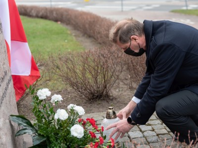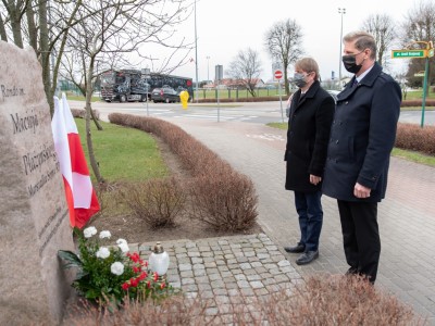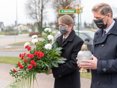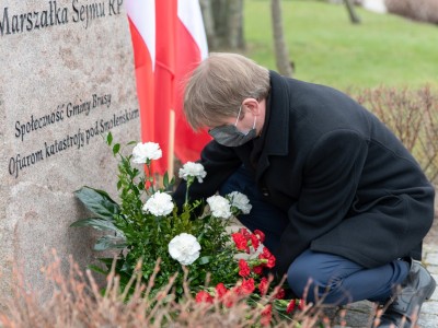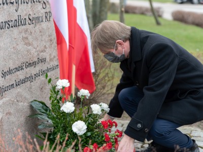 W hołdzie tragicznie zmarłym, Burmistrz Brus Witold Ossowski oraz Przewodniczący Rady Miejskiej w Brusach Zbigniew Łącki, złożyli wiązankę kwiatów oraz znicz przy pomniku ofiar katastrofy smoleńskiej, który mieści się w sąsiedztwie ronda im. Marszałka Sejmu RP Macieja Płażyńskiego w Brusach.
