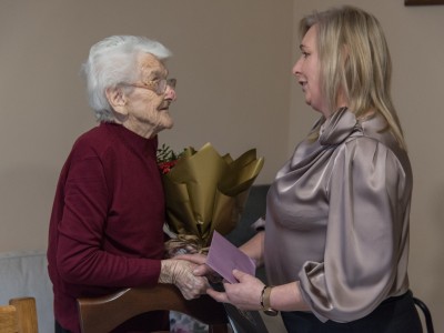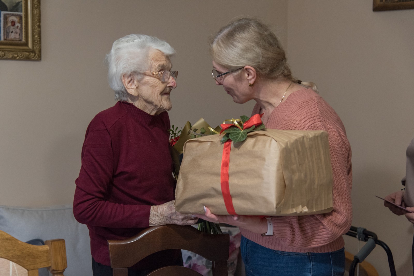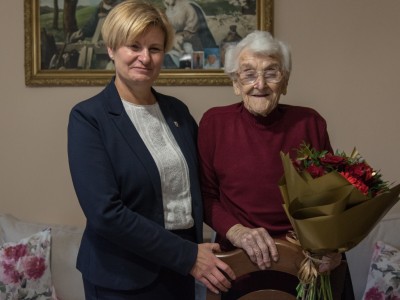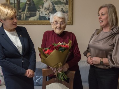 Pani Genowefa Bartkowska z Zalesia jest najstarszą mieszkanką gminy Brusy. 28 listopada świętowała 102. urodziny. Z serdecznymi życzeniami odwiedziły Panią Genowefę: w imieniu własnym i burmistrza Brus Witolda Ossowskiego, sekretarz Gminy Brusy Mariola Rodzeń, a także radna Rady Miejskiej Emilia Warnke i sołtys Zalesia Kamila Schwichtenberg. Nie zabrakło oczywiście najbliższej rodziny - dzieci i wnucząt.