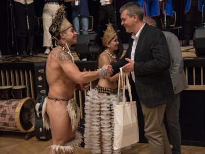 Uczestnicy festiwalu zostali wczoraj serdecznie powitani przez organizatorów wydarzenia. „Kaszubskie Spotkania z Folklorem Świata” współorganizują Gmina Brusy, Centrum Kultury i Biblioteki w Brusach, Gmina Karsin, Gmina Czersk, Gmina Kościerzyna i Miasto Kościerzyna. Na ręce delegacji każdego z zespołów przekazano upominki nawiązujące do kultury kaszubskiej i symboli poszczególnych samorządów organizujących festiwal.