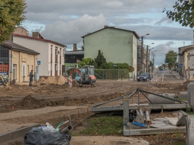 - ul. Pocztowa – zakończone roboty branży sanitarnej, trwają roboty branży drogowej i elektrycznej, obowiązuje zmieniona organizacja ruchu