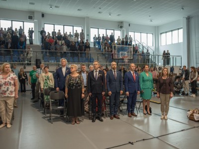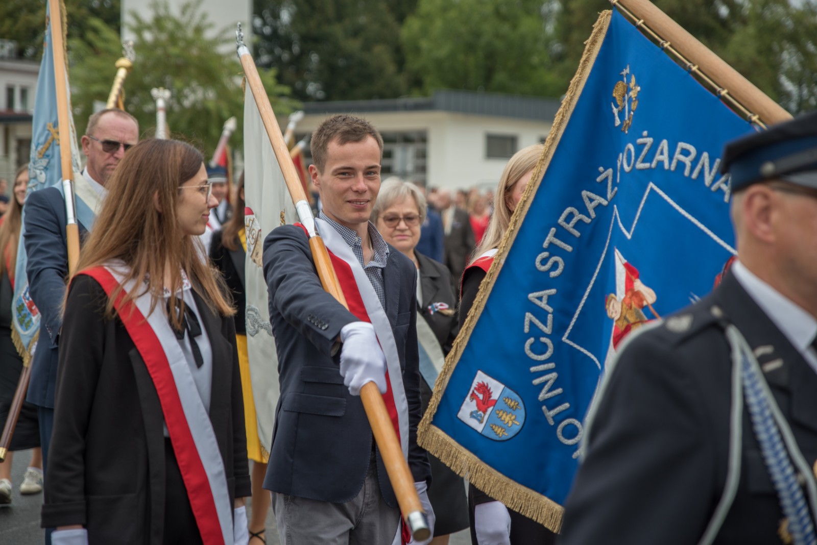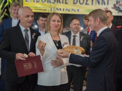 Po mszy barwny korowód – pełen kaszubskiej muzyki, stukotu końskich kopyt i warkotu maszyn rolniczych – przeszedł do Hali Sportowo-Widowiskowej, gdzie odbyła się główna część uroczystości. Świętowanie otworzył huk armatni Kurkowego Bractwa Strzeleckiego, wspólny śpiew hymnu narodowego oraz dzielenie się chlebem, którego dokonali burmistrz Brus Witold Ossowski oraz starostowie dożynek – Daria Miszewska i Andrzej Stoltmann.