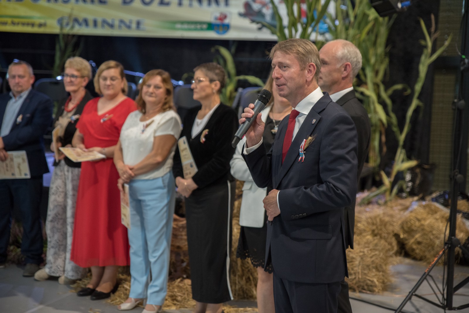 Ogromne zaangażowanie mieszkańców naszej gminy sprawiło, że korowód dożynkowy był wyjątkowo barwny i efektowny. Można było podziwiać 36 pojazdów – 3 konne i 33 mechaniczne, starannie udekorowane dożynkowymi motywami.