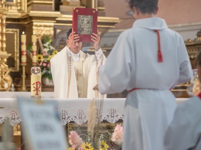 Zaborskie Dożynki Gminne rozpoczęły się w kościele parafialnym w Brusach uroczystą mszą świętą, której przewodniczył i homilię wygłosił ks. Rafał Grot. Podczas liturgii poświęcono chleb i wieńce dożynkowe – symbol dostatku, wdzięczności i zamkniętego cyklu całorocznej pracy rolników, ogrodników, przetwórców i działkowców.