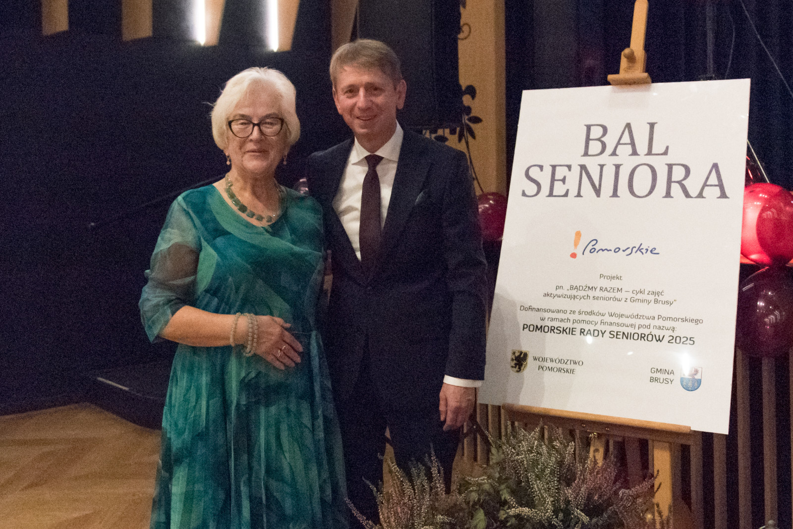 Bal został zorganizowany w ramach projektu „Bądźmy razem – cykl zajęć aktywizujących seniorów z Gminy Brusy”, dofinansowanego ze środków Województwa Pomorskiego w ramach programu Pomorskie Rady Seniorów 2025.