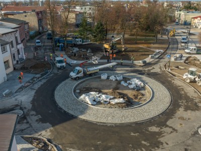 Trzecie rondo w Brusach, przy Placu Jana Pawła II, jest już niemal gotowe. To część prowadzonej w mieście przebudowy ulic obejmującej blisko 2 km dróg.