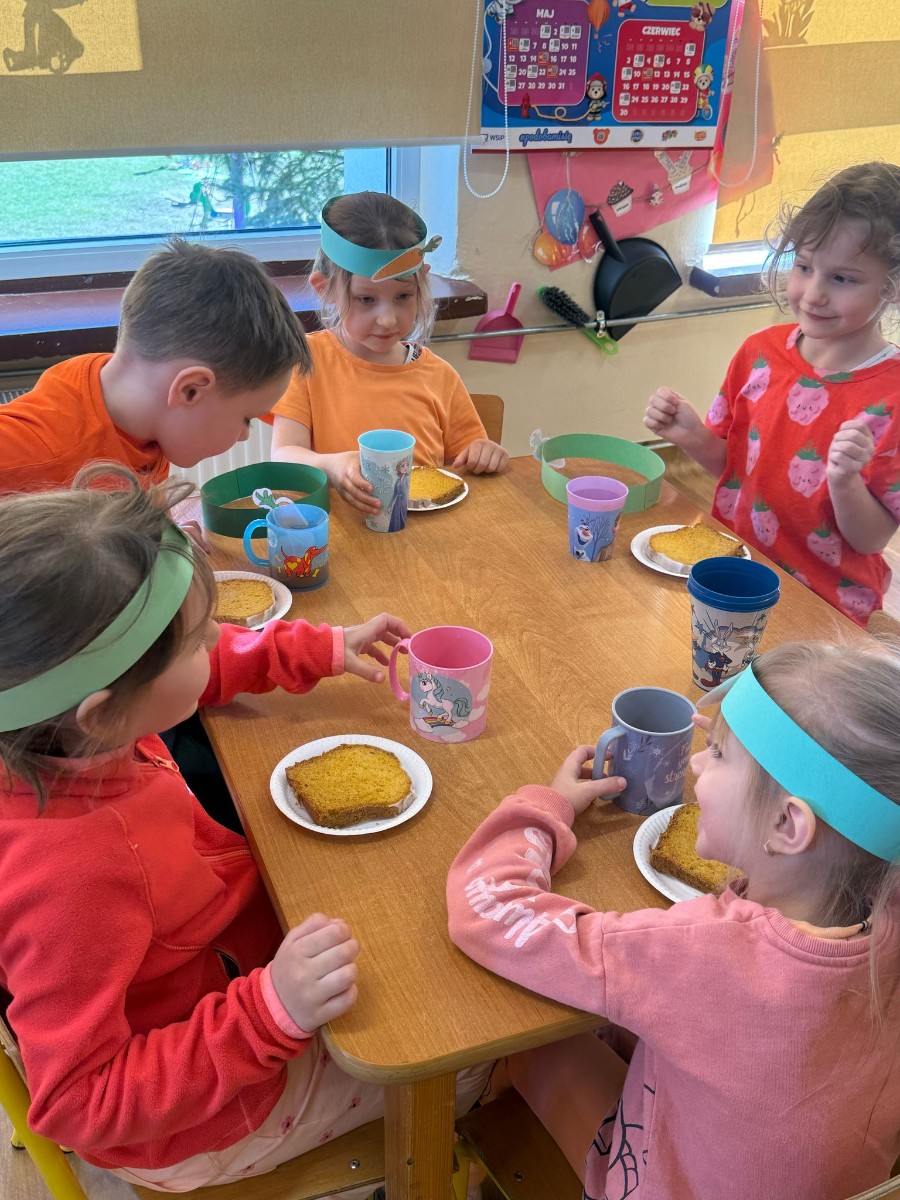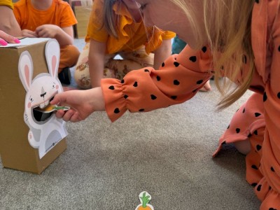 Międzynarodowy Dzień Marchewki obchodzony jest każdego roku 4 kwietnia. Celem Dnia Marchewki jest rozpowszechnianie wiedzy o tych warzywach i o zdrowym stylu życia. Tego dnia również dzieci z naszego przedszkola celebrowały to Święto. Nie zabrakło licznych gier i zabaw o tematyce marchewkowej, ale też strojów w kolorze pomarańczowym. Żabki chętnie słuchały informacji dotyczących pochodzenia święta, "karmiły królika Benia", przeliczały marchewki, smakowały surowego warzywa, wykonywały sok marchewkowo-jabłkowy, by na koniec delektować się nim, zajadając marchewkowe ciasto.
