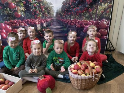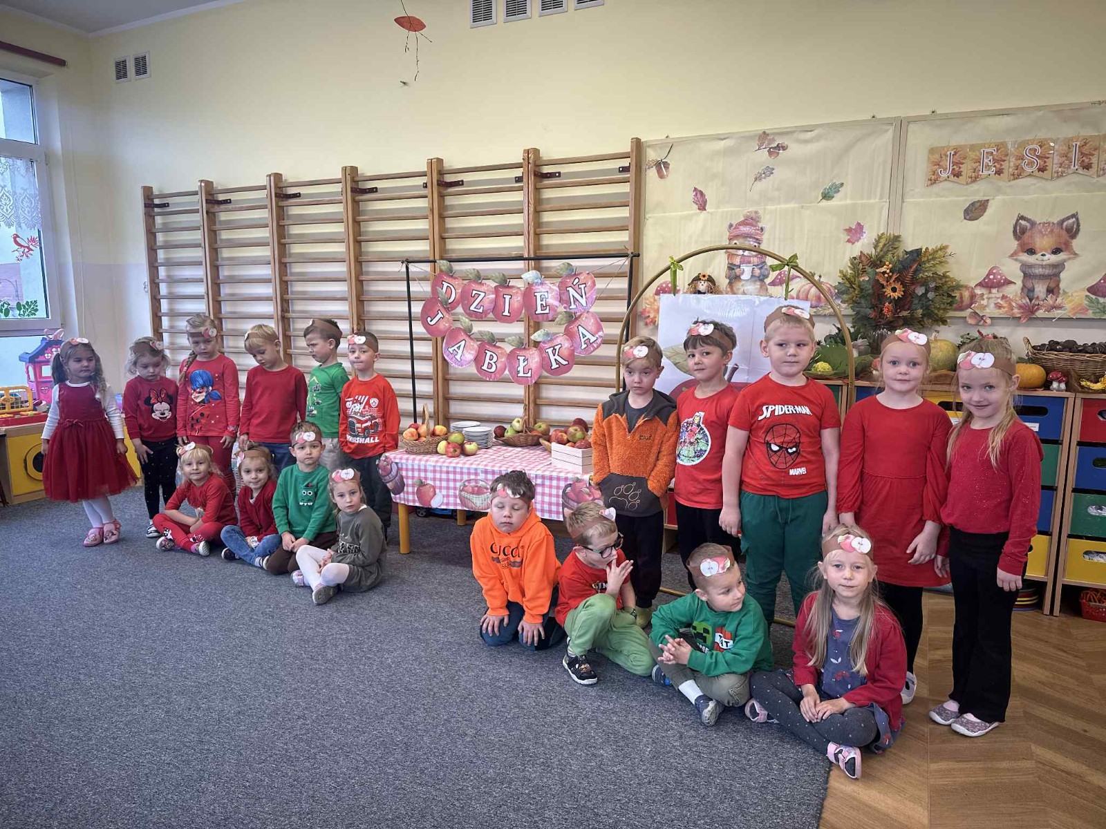 Tego dnia przedszkolaki przyszły ubrane w kolory jabłek – czerwony, zielony i żółty. Każde dziecko przyniosło też swoje jabłko, które towarzyszyło im podczas wspólnych zabaw i zajęć.