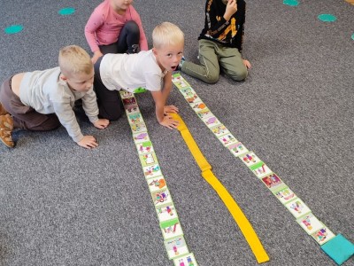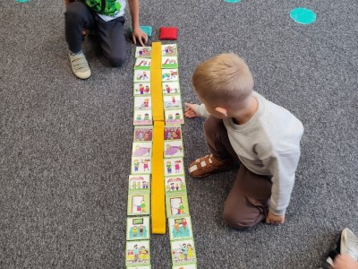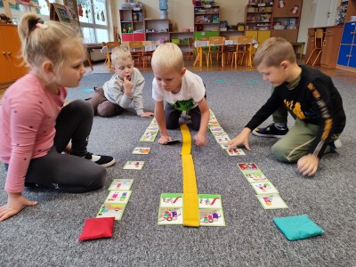 Zajęcia psychoruchowe prowadzone w naszym przedszkolu w ramach programu Gmina Brusy stawia na przedszkolaków zawsze na twarzach dzieci wywołują uśmiech i zaciekawienie. Tym razem na jednym spotkaniu dzieci oceniały, które z przedstawionych sytuacji są poprawne, a które nigdy nie powinny mieć miejsca. Wszystkie oczywiście odnosiły do swojego codziennego życia. Na kolejnym spotkaniu "spacerowały po lesie" biorąc udział w grze planszowej podczas, której doskonaliły umiejętność współdziałania w zespole, przeliczania i radzenia sobie z porażką.