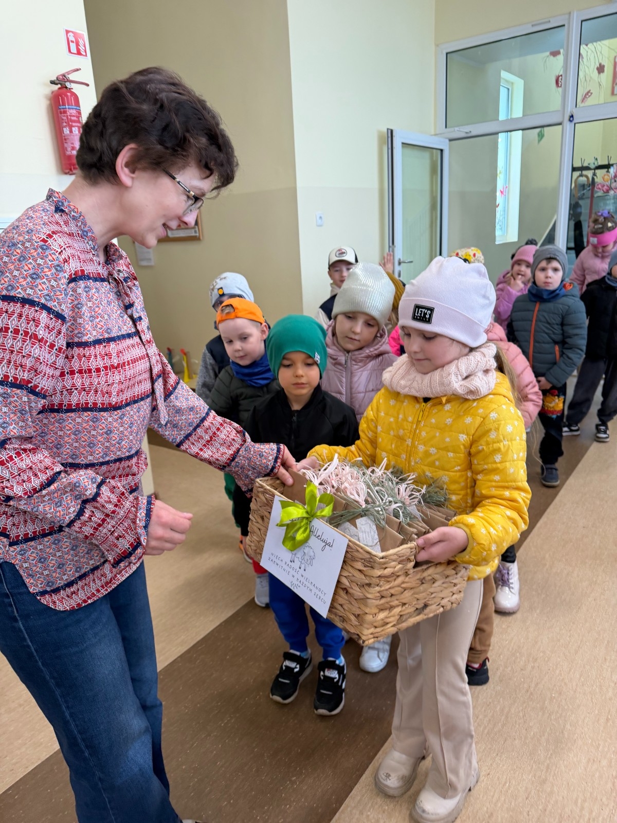 Przedszkolaki spotkały się z Księdzem Prałatem Zdzisławem Wirwickim, a także odwiedziły kancelarię parafialną w Brusach. Dzieci złożyły życzenia również w Przedszkolu Sióstr Zmartwychwstanek, Środowiskowym Domu Samopomocy, spotkały się z pracownikami Warsztatów Terapii Zajęciowej w Brusach oraz Gminnego Zarządu Oświaty.