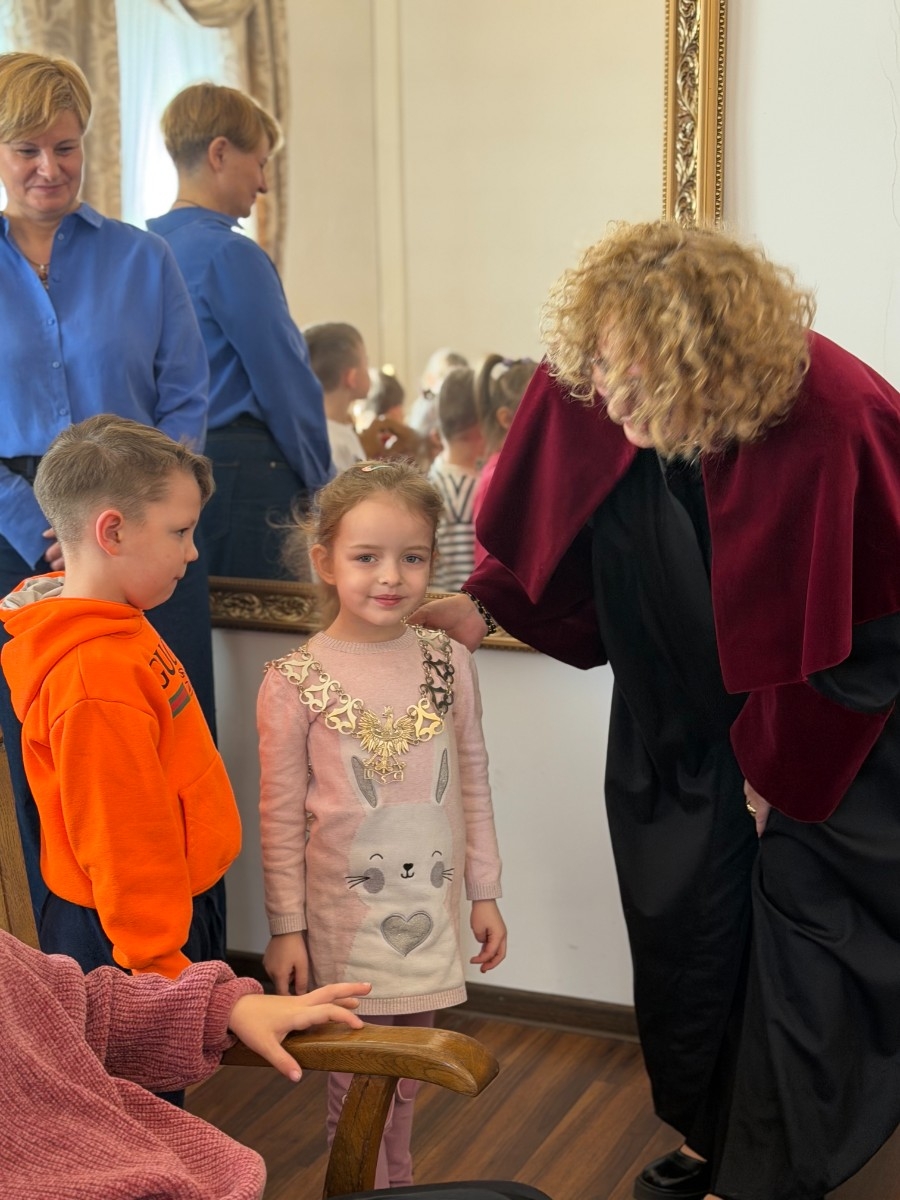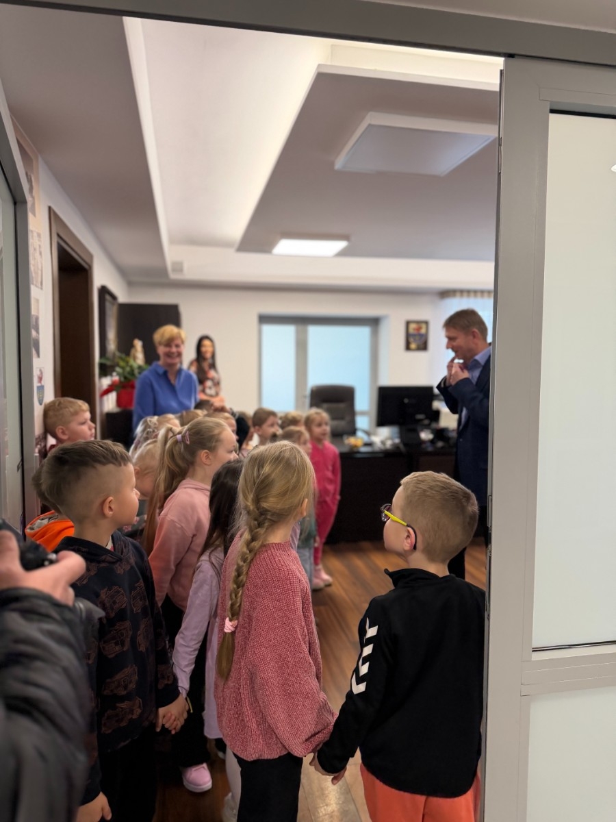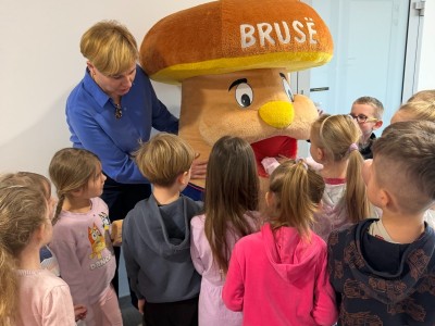 Pomimo wielu obowiązków, dzieci miały również okazję spotkać się z Burmistrzem Brus, Panem Witoldem Ossowskim, który serdecznie je przywitał. Podczas wizyty przedszkolaki zobaczyły także miejsce pracy taty Jagienki oraz wykonały pamiątkowe zdjęcia z Bruskiem.