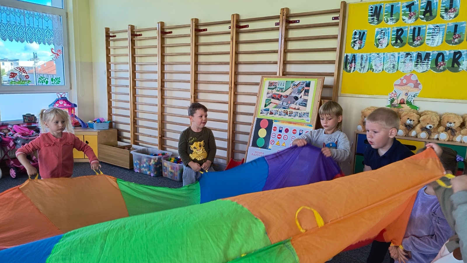PRZEDSZKOLE NR 1 W BRUSACH: Zajęcia psycho-ruchowe „Fale” z wykorzystaniem chusty animacyjnej