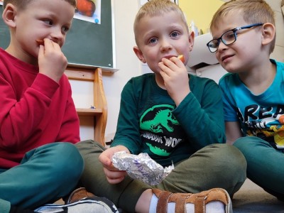 Każdy przedszkolak uwielbia jabłka! Przekonaliśmy się o tym w październiku podczas świętowania dnia tego owocu. Dzień jabłka przyniósł wszystkim mnóstwo radości. Piosenki, zabawy ruchowe, pogadanki o właściwościach zdrowotnych owoców i możliwościach ich przetworzenia oraz degustacja świeżego soku sprawiły, że apetyt dzieci na owoce wzrósł jeszcze bardziej. Jedzmy więc owoce! Na zdrowie!