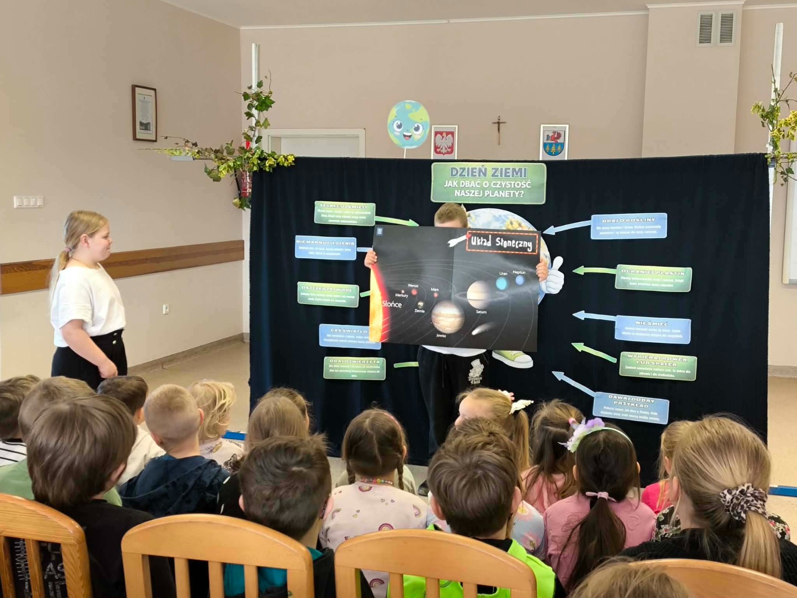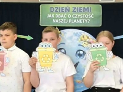 22 kwietnia obchodzimy Dzień Ziemi. W naszej szkole tego dnia także postanowiliśmy uczcić to święto. Uczniowie klasy III przygotowali krótkie przedstawienie, w którym ukazane były skutki zanieczyszczania naszej planety i jak temu zapobiegać. Wszystkim bardzo się podobało, a aktorzy otrzymali zasłużone brawa. Na zakończenie odbyło się też ogłoszenie szkolnego „Konkursu pięknego pisania”, którego celem było propagowanie wśród uczniów sztuki pięknego pisania, zachęcanie do dbania o estetykę i charakter pisania. Tegoroczne zadanie polegało na przepisaniu wiersza o naszej planecie Ziemi. Wyniki konkursu: Kategoria: klasa I- III: I miejsce: Alicja Kloskowska i Antonina Jankowska II miejsce: Natalia Janikowska i Hanna Rafińska III miejsce: Oskar Klóskowski Kategoria: klasa IV-VI: I miejsce: Milena Skiba II miejsce: Dorota Zblewska i Oliwia Bruska III miejsce: Rafał Kloskowski.