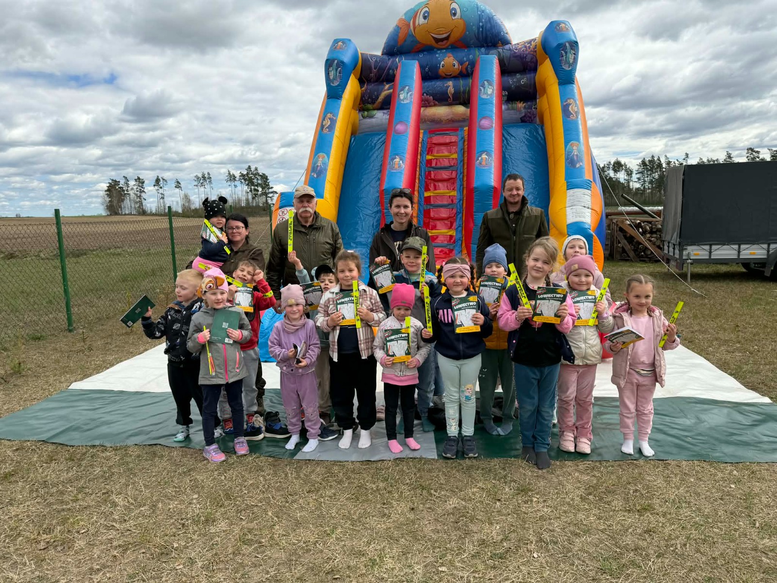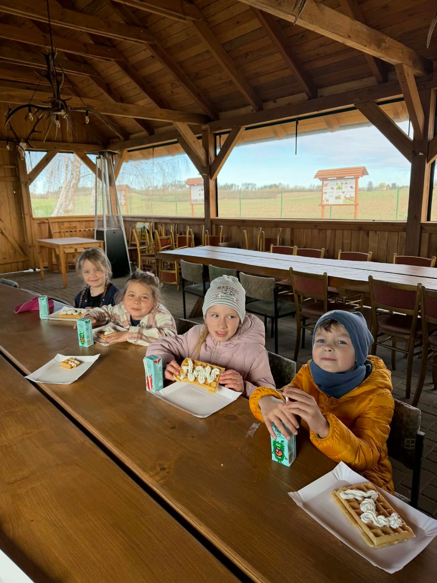 Przedszkolaki, na zaproszenie Państwa Leszczyńskich oraz Koła Łowieckiego ,,ECHO” wzięły udział w wyjeździe edukacyjnym do miejscowości Małe Chełmy. Na dzieci czekało wiele atrakcji – dmuchaniec, ścieżka edukacyjna poświęcona zwierzętom i roślinom, spotkanie z panem pszczelarzem, a także pyszne gofry. Spotkanie zakończyło się wspólnym ogniskiem, które dostarczyło wszystkim dużo radości i niezapomnianych wrażeń. Dzieci otrzymały także odblaskowe opaski z logo Koła Łowieckiego oraz kolorowanki. Bardzo dziękujemy za zaproszenie!