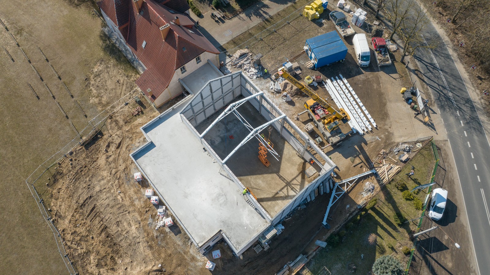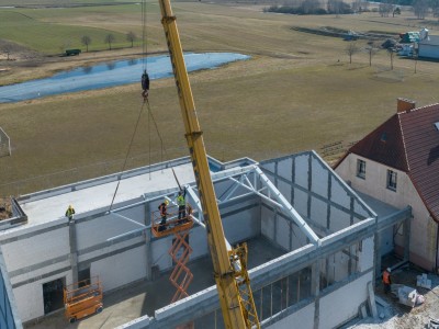 MONTAŻ KONSTRUKCJI DACHOWEJ SALI GIMNASTYCZNEJ W ZALESIU