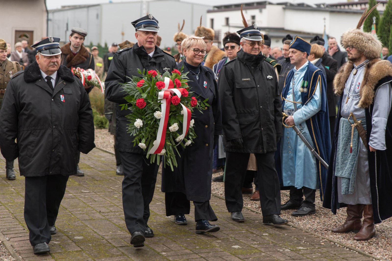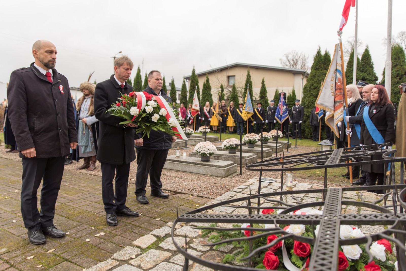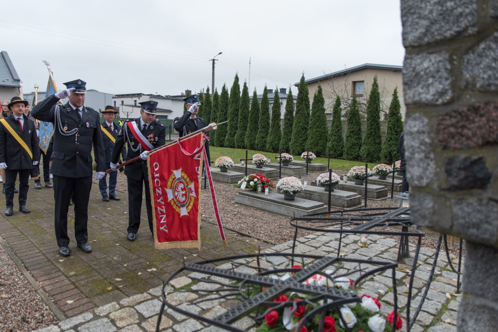 Po mszy uczestnicy udali się w przemarszu prowadzonym przez orkiestrę na cmentarz ofiar zbrodni hitlerowskich, gdzie odbyła się dalsza część uroczystości. Wspólnie odśpiewano hymn państwowy, oddając hołd wszystkim, którzy walczyli o wolność i niepodległość Polski. Następnie złożono kwiaty i zapalono znicze przy pomniku ofiar II wojny światowej.