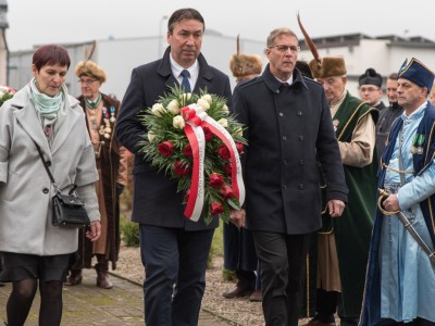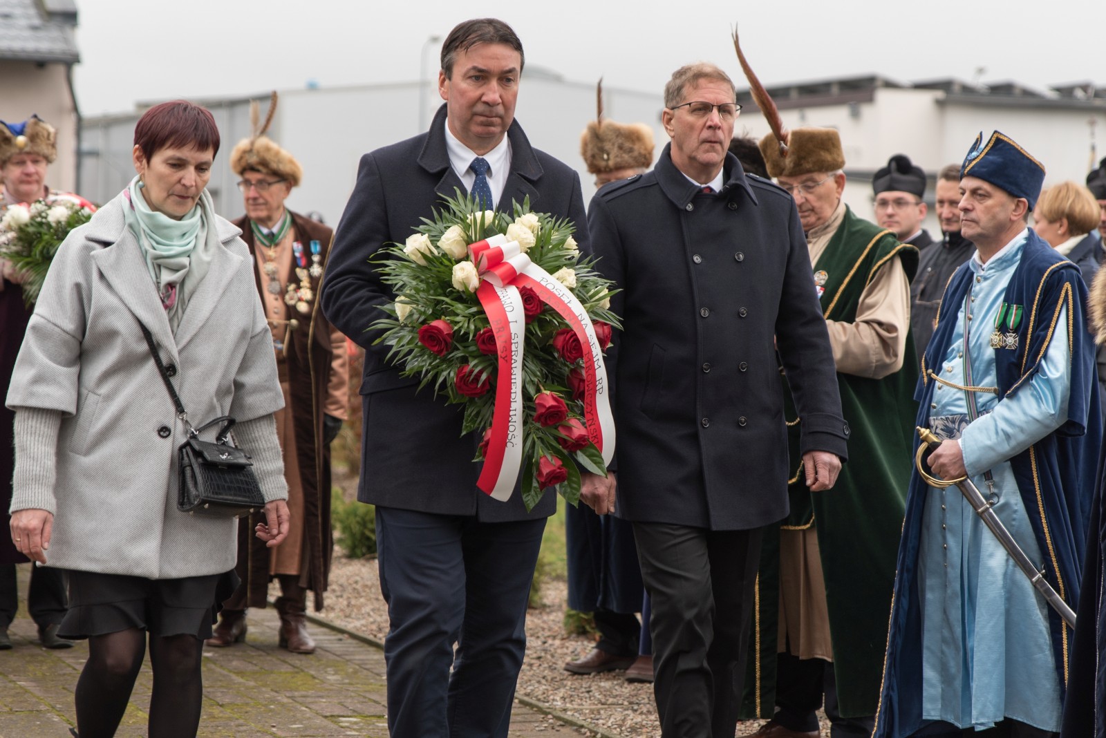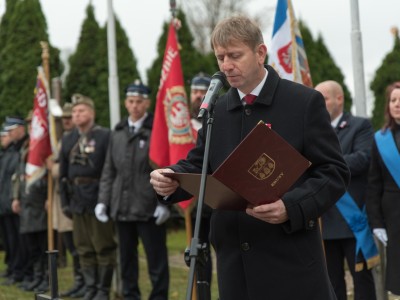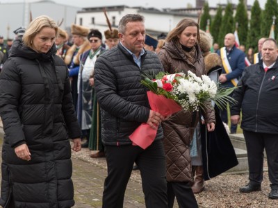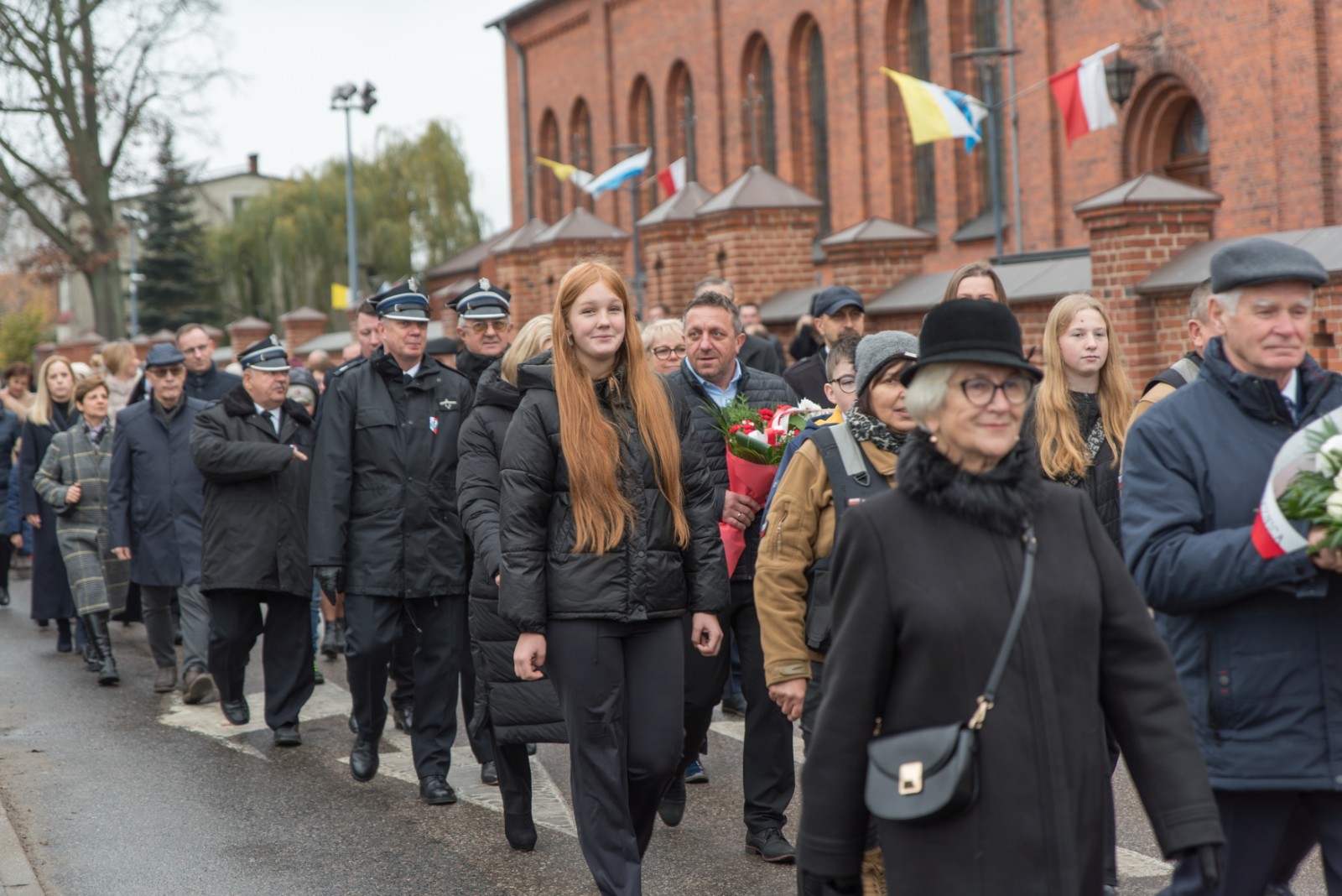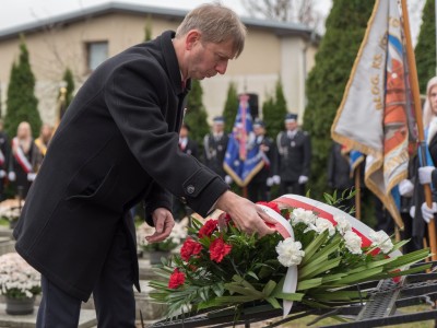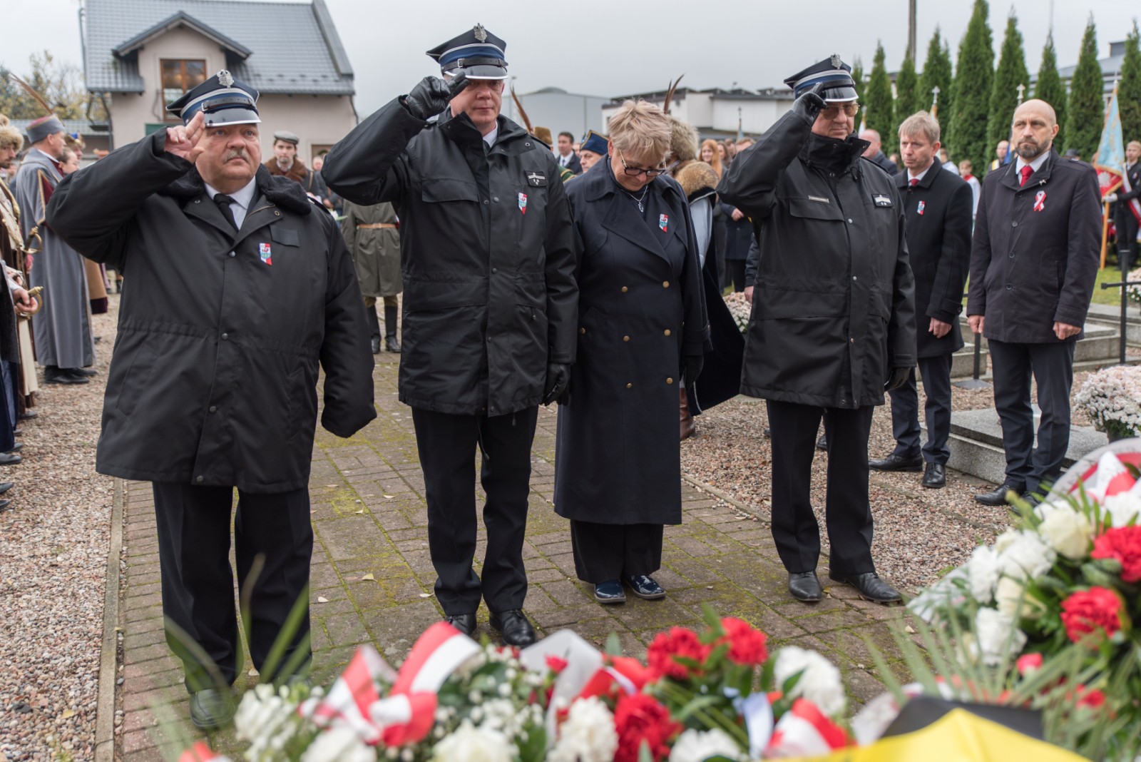 Po mszy uczestnicy udali się w przemarszu prowadzonym przez orkiestrę na cmentarz ofiar zbrodni hitlerowskich, gdzie odbyła się dalsza część uroczystości. Wspólnie odśpiewano hymn państwowy, oddając hołd wszystkim, którzy walczyli o wolność i niepodległość Polski. Następnie złożono kwiaty i zapalono znicze przy pomniku ofiar II wojny światowej.