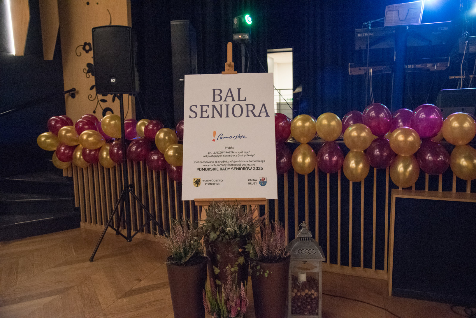 Bal został zorganizowany w ramach projektu „Bądźmy razem – cykl zajęć aktywizujących seniorów z Gminy Brusy”, dofinansowanego ze środków Województwa Pomorskiego w ramach programu Pomorskie Rady Seniorów 2025.