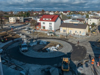 Trzecie rondo w Brusach, przy Placu Jana Pawła II, jest już niemal gotowe. To część prowadzonej w mieście przebudowy ulic obejmującej blisko 2 km dróg.
