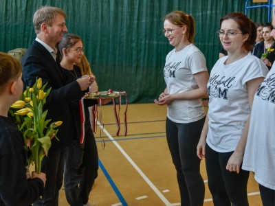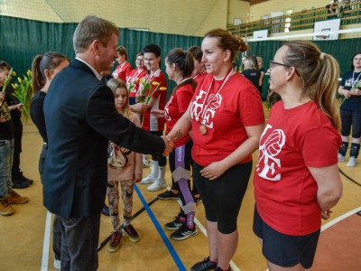 Medale i kwiaty dla uczestniczek biorących udział w czwartym turnieju piłki siatkowej kobiet wręczył Witold Ossowski, burmistrz Brus. Nad poprawnym przebiegiem rozgrywek czuwała Izabela Dudek - Rogala, wuefistka i główny sędzia zawodów.