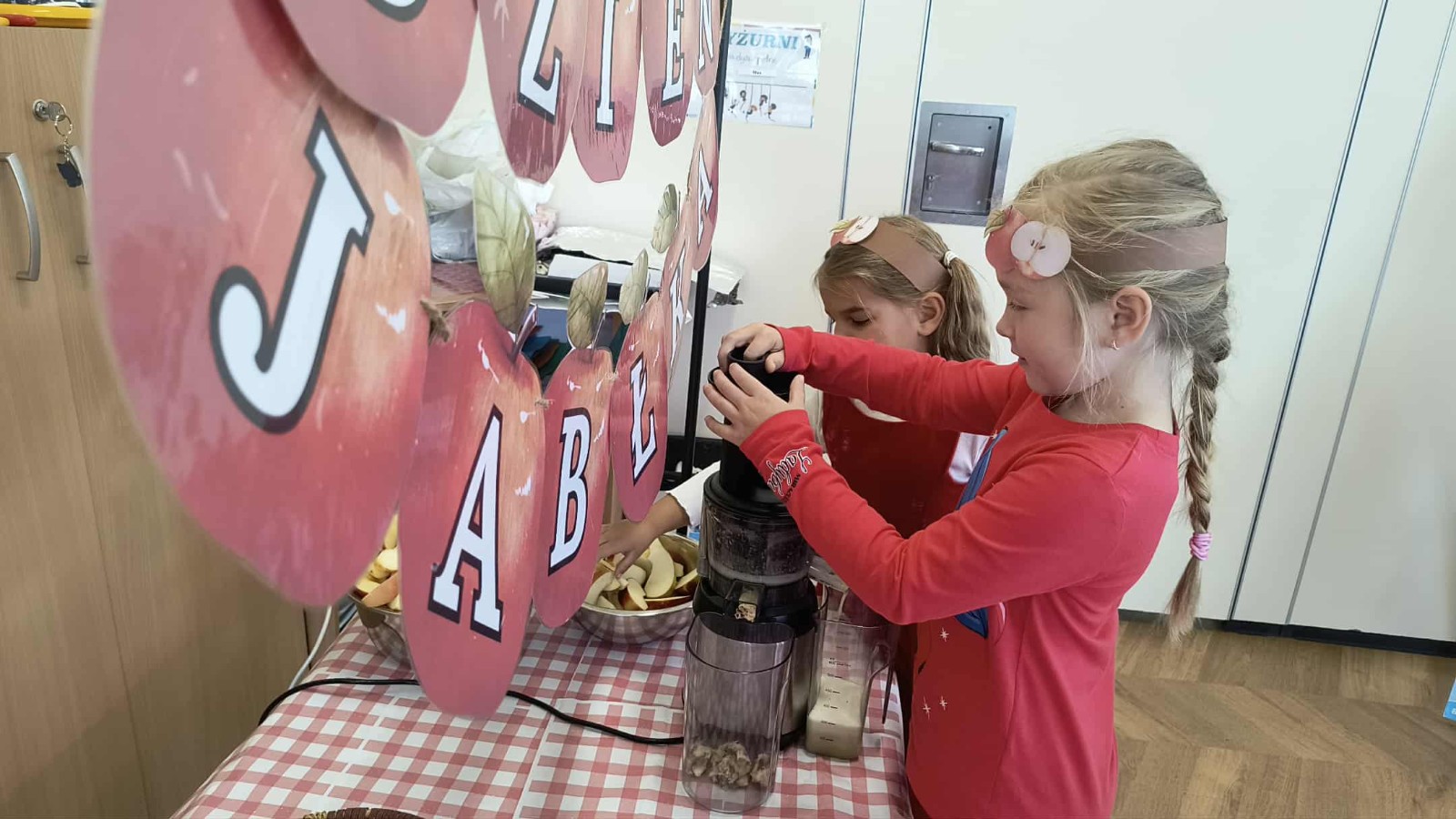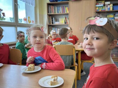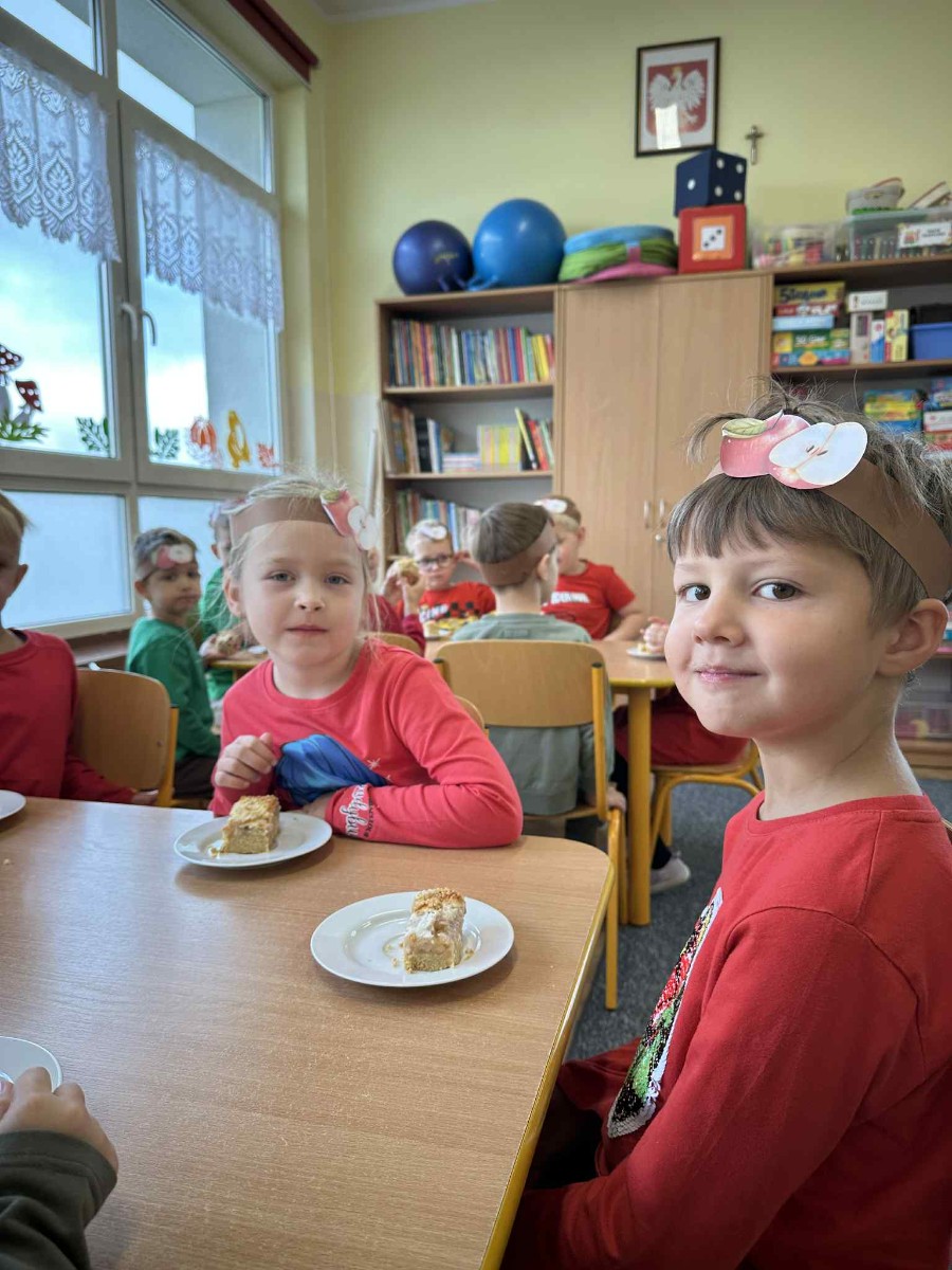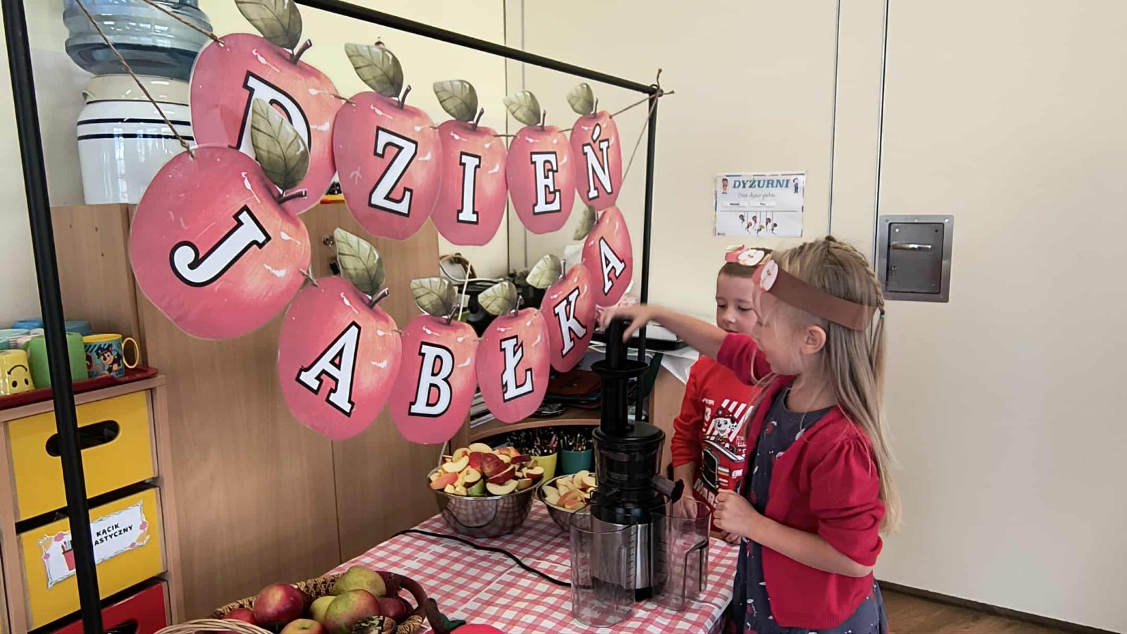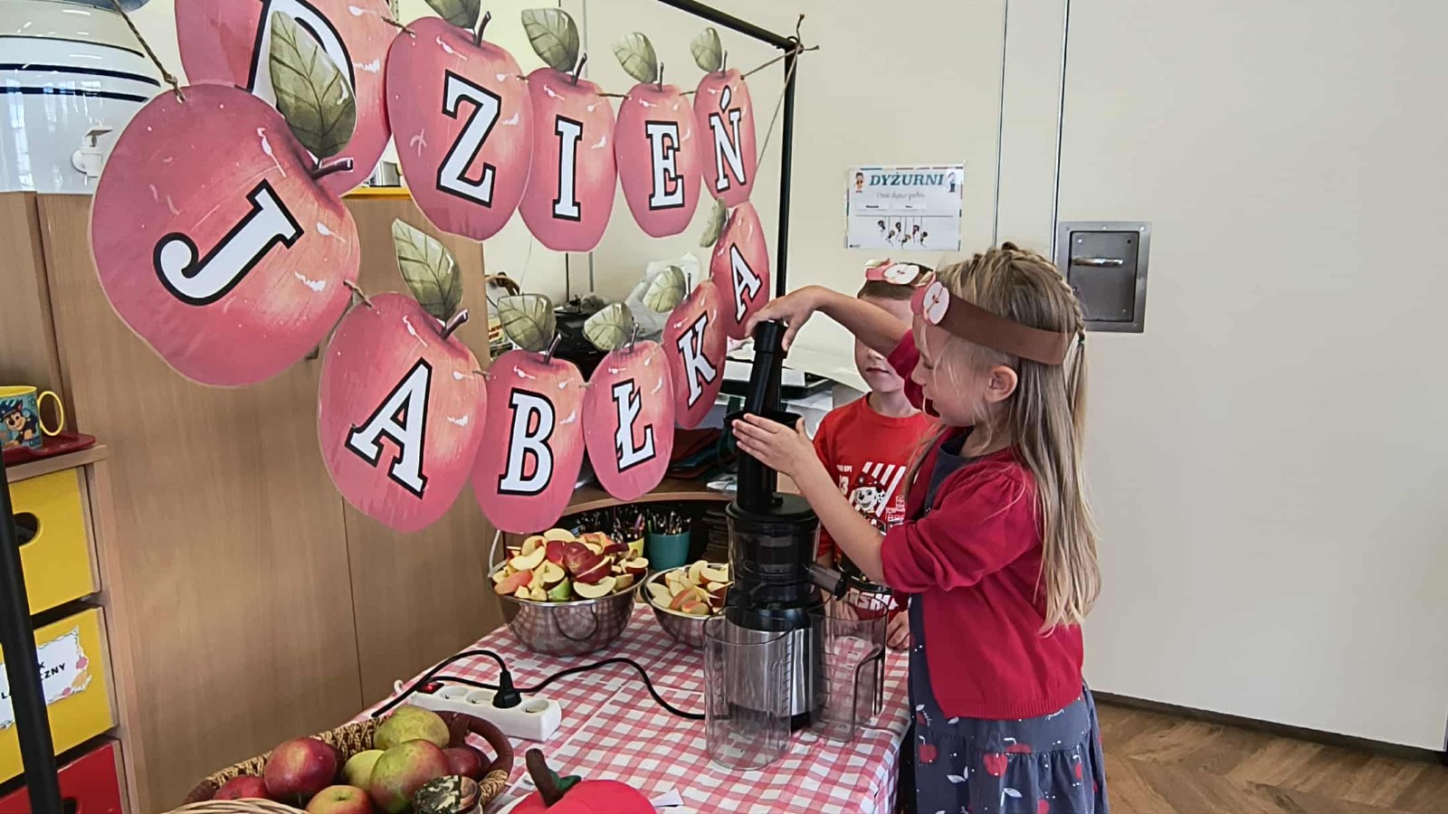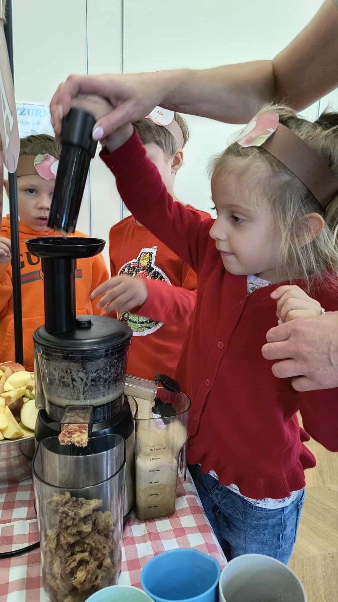 Nie zabrakło też słodkich przyjemności – zajadaliśmy się przepyszną szarlotką i babeczkami przygotowanymi przez rodziców. Na zakończenie dnia wspólnie przygotowaliśmy świeży sok jabłkowy, a na pamiątkę wykonaliśmy piękne zdjęcia, które długo będą przypominać te radosne chwile.