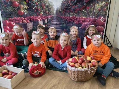 Tego dnia przedszkolaki przyszły ubrane w kolory jabłek – czerwony, zielony i żółty. Każde dziecko przyniosło też swoje jabłko, które towarzyszyło im podczas wspólnych zabaw i zajęć.