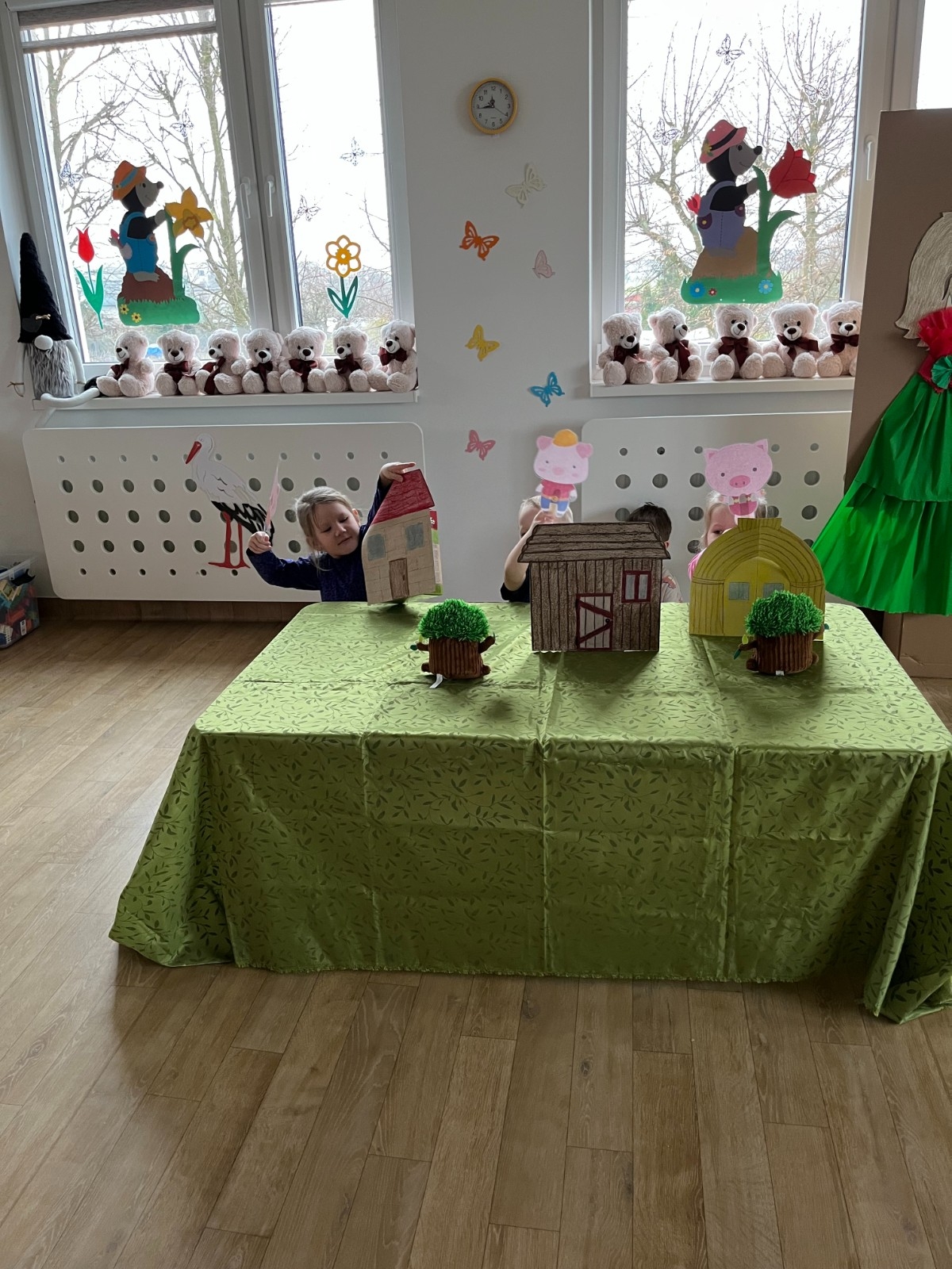 Podczas marcowych zajęć teatralnych, realizowanych w ramach projektu Gmina Brusy stawia na przedszkolaków, Krasnoludki z Przedszkola nr 1 w Brusach obejrzały teatrzyk pt. Trzy świnki w wykonaniu nauczycielki. Po przedstawieniu dzieci bawiły się przygotowanymi przez nauczycielkę pacynkami wcielając się w rolę postaci z obejrzanej bajki. Zabawy w teatrze sprawiają dzieciom dużą frajdę. Dzieci mogły także same przygotować paluszkowe pacynki do zabaw w domu.