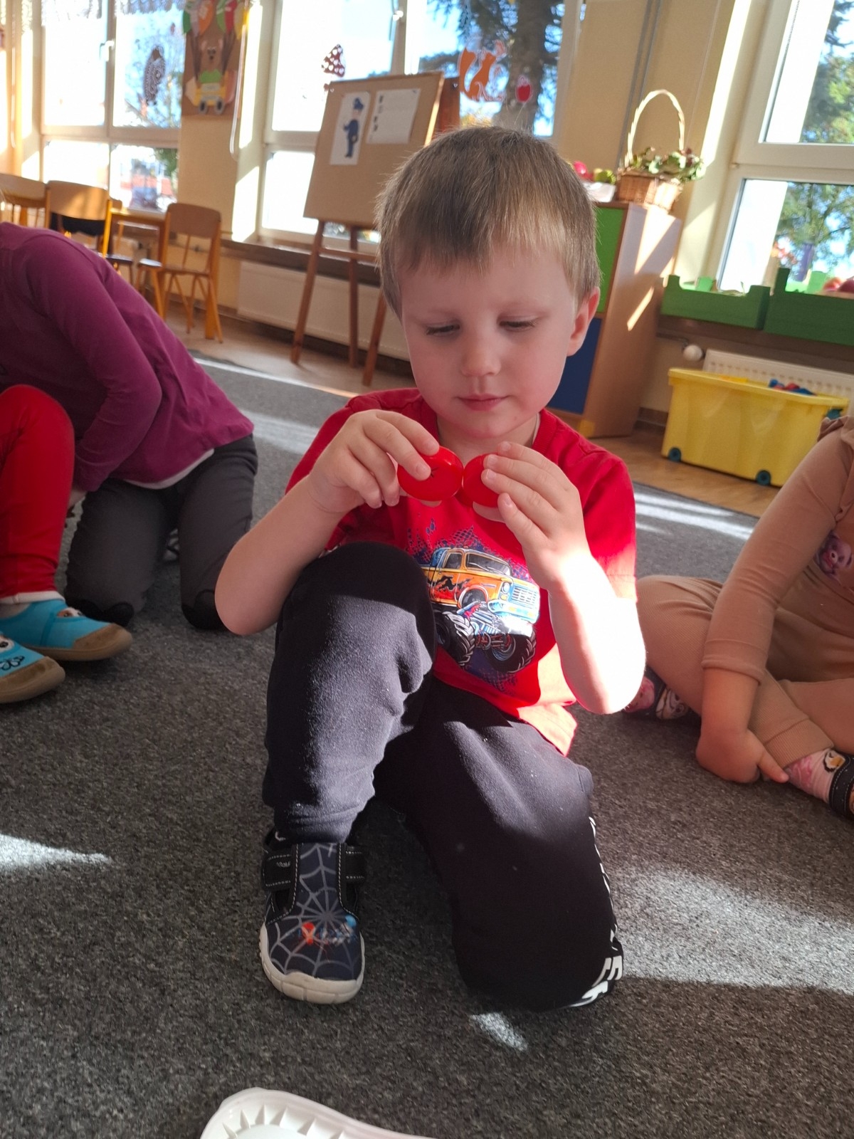 W ramach projektu "Gmina Brusy stawia na przedszkolaków" w Przedszkolu nr 1 w Brusach są prowadzone zajęcia stymulujące rozwój psychoruchowy. Celem tych zajęć jest wielostronny rozwój psychofizyczny uczestników. Stymulują one rozwój umysłowy, emocjonalny i społeczny oraz poprawiają sprawność ruchową, a także pomagają w nauce radzenia sobie z emocjami. Do tej pory udało nam się zrealizować szereg zabaw z piłką, które doskonalą koordynacje ruchową, koncentrację, spostrzegawczość, a także współpracę. Zajęcia stymulujące rozwój psychoruchowy opierają się też na doskonaleniu zmysłów, m.in. poprzez zabawy sensoryczne, zabawy wzrokowe, słuchowe, węchowe, które realizujemy podczas naszych spotkań. Pobudzaliśmy nasze zmysły w czasie zabaw z węchowym memory - naszym zadaniem było znalezienie takich samych zapachów. Niesamowitych doznań przyniosło nam malowanie kawą. Innym razem stymulowaliśmy doznania dotykowe w czasie zabawy plasteliną. W przedszkolu również ćwiczymy koordynację i równowagę dzięki sprzętom uzyskanym w ramach projektu "Gmina Brusy wspiera przedszkolaków". Zajęcia psychoruchowe przynoszą radość i zadowolenie wśród dzieci, dlatego uczestnicy czekają na nie z niecierpliwością.
