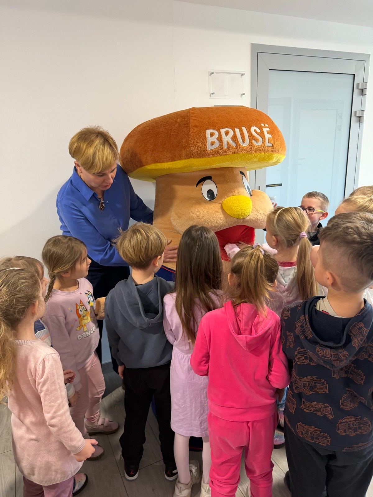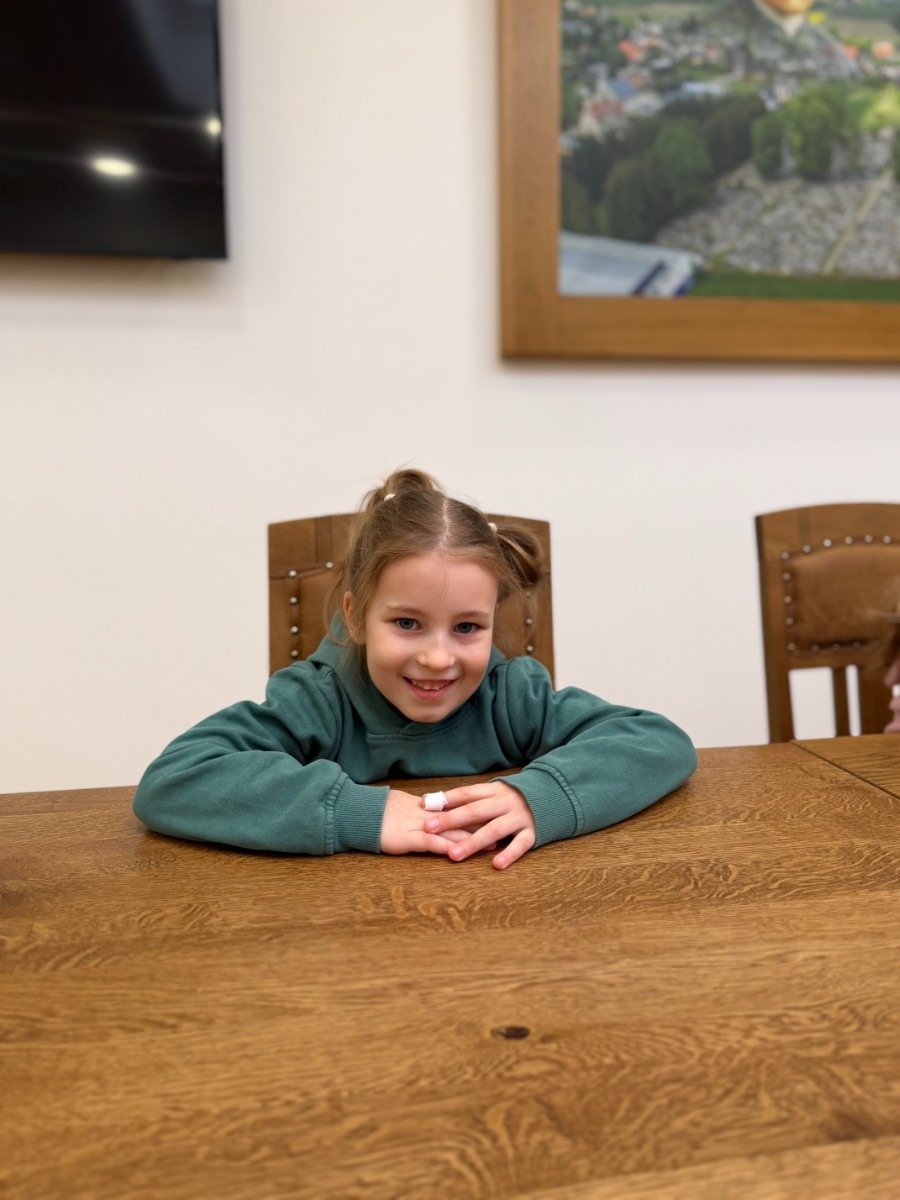 Pomimo wielu obowiązków, dzieci miały również okazję spotkać się z Burmistrzem Brus, Panem Witoldem Ossowskim, który serdecznie je przywitał. Podczas wizyty przedszkolaki zobaczyły także miejsce pracy taty Jagienki oraz wykonały pamiątkowe zdjęcia z Bruskiem.