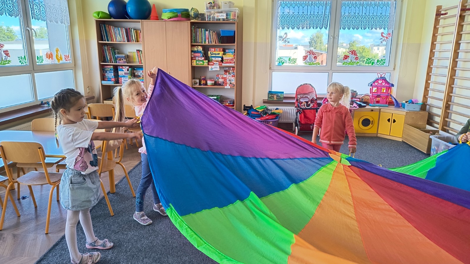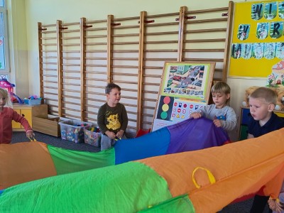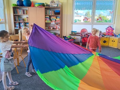 PRZEDSZKOLE NR 1 W BRUSACH: Zajęcia psycho-ruchowe „Fale” z wykorzystaniem chusty animacyjnej