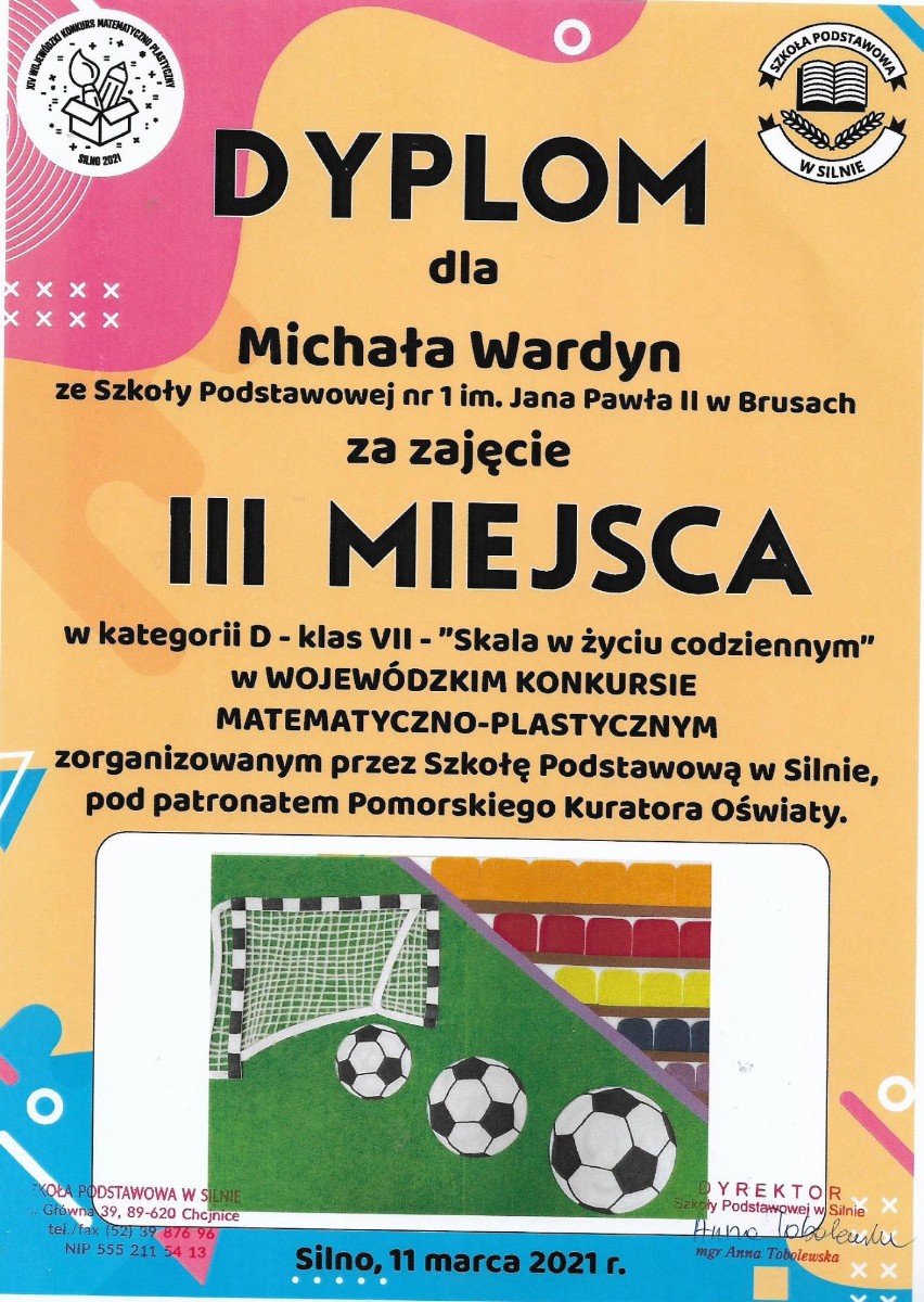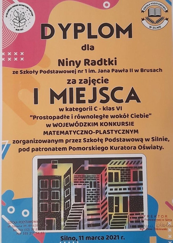 SP BRUSY NR 1: Sukces uczniów Szkoły Podstawowej nr.1 im. Jana Pawła II w Brusach w XIV Wojewódzkim Konkursie Matematyczno-Plastycznym