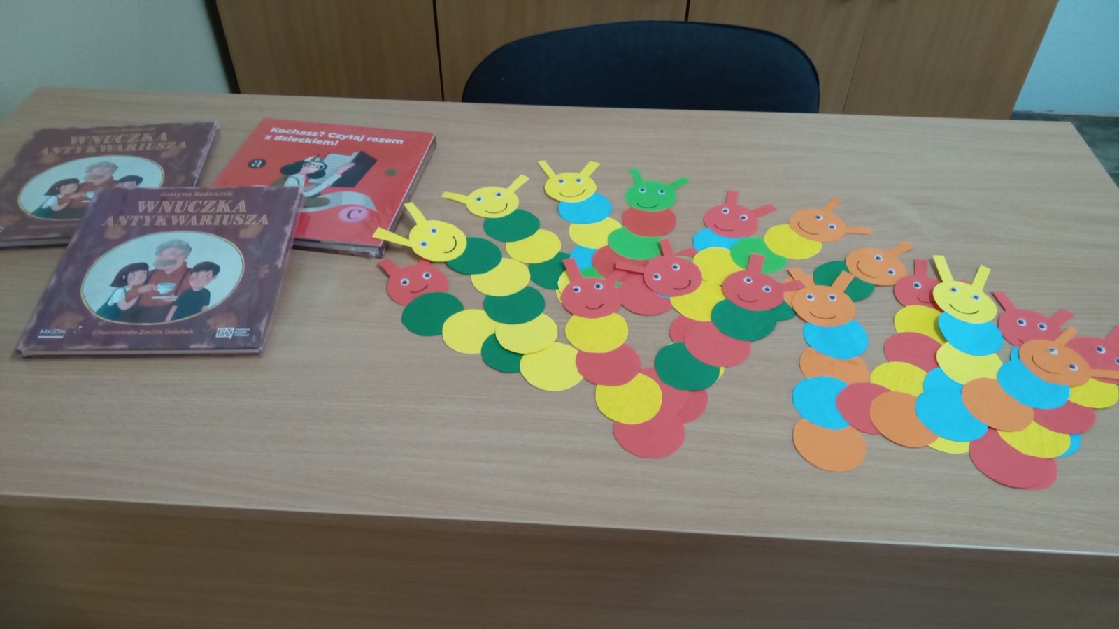 Na zakończenie spotkania nowi czytelnicy otrzymali piękne kolorowe zakładki do książek wykonane przez panią bibliotekarkę. Poza tym dzieci otrzymały w prezencie od Instytutu Książki w ramach kolejnej edycji kampanii pt. „ Mała książka – wielki człowiek” pozycję książkową pt.. „Wnuczka Antykwariusza”, zaś rodzice broszurę z informacjami o korzyściach wynikających ze wspólnej rodzinnej lektury pt. „ Kochasz ? Czytaj razem z dzieckiem!