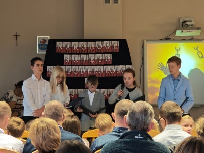 W dniu 14 listopada w naszej szkole odbył się uroczysty apel upamiętniający 107. rocznicę odzyskania przez Polskę Niepodległości zorganizowany dla społeczności lokalnej oraz uczestników Warsztatów Terapii Zajęciowej z Brus. W wydarzeniu wzięli udział zarówno uczniowie, jak i nauczyciele, którzy wspólnie przygotowali część artystyczną i historyczną. Uczniowie recytowali wiersze oraz przedstawili trudną drogę Polaków do wolności, od czasów rozbiorów aż po rok 1939. Wyśpiewane pieśni patriotyczne zachęcały wszystkich do wspólnego śpiewu i wspomnień. Całość przeplatana była fragmentami powieści "Asiunia” Joanny Papuzińskiej. Apel był nie tylko lekcją historii, ale także okazją do refleksji nad wartością wolności i odpowiedzialnością za przyszłość kraju. Dzięki zaangażowaniu uczniów i nauczycieli uroczystość miała podniosły i wzruszający charakter. Na koniec wszyscy odśpiewali Hymn Narodowy. Apel łączył w sobie realizację działań związanych z 2 kierunkiem polityki oświatowej państwa "Szkoła miejscem edukacji obywatelskiej - kształtowanie postaw patriotycznych, społecznych i obywatelskich, odpowiedzialności za region i ojczyznę, dbałości o bezpieczeństwo własne i innych" a także promowaniem czytelnictwa w ramach realizacji Narodowego Programu Rozwoju Czytelnictwa.