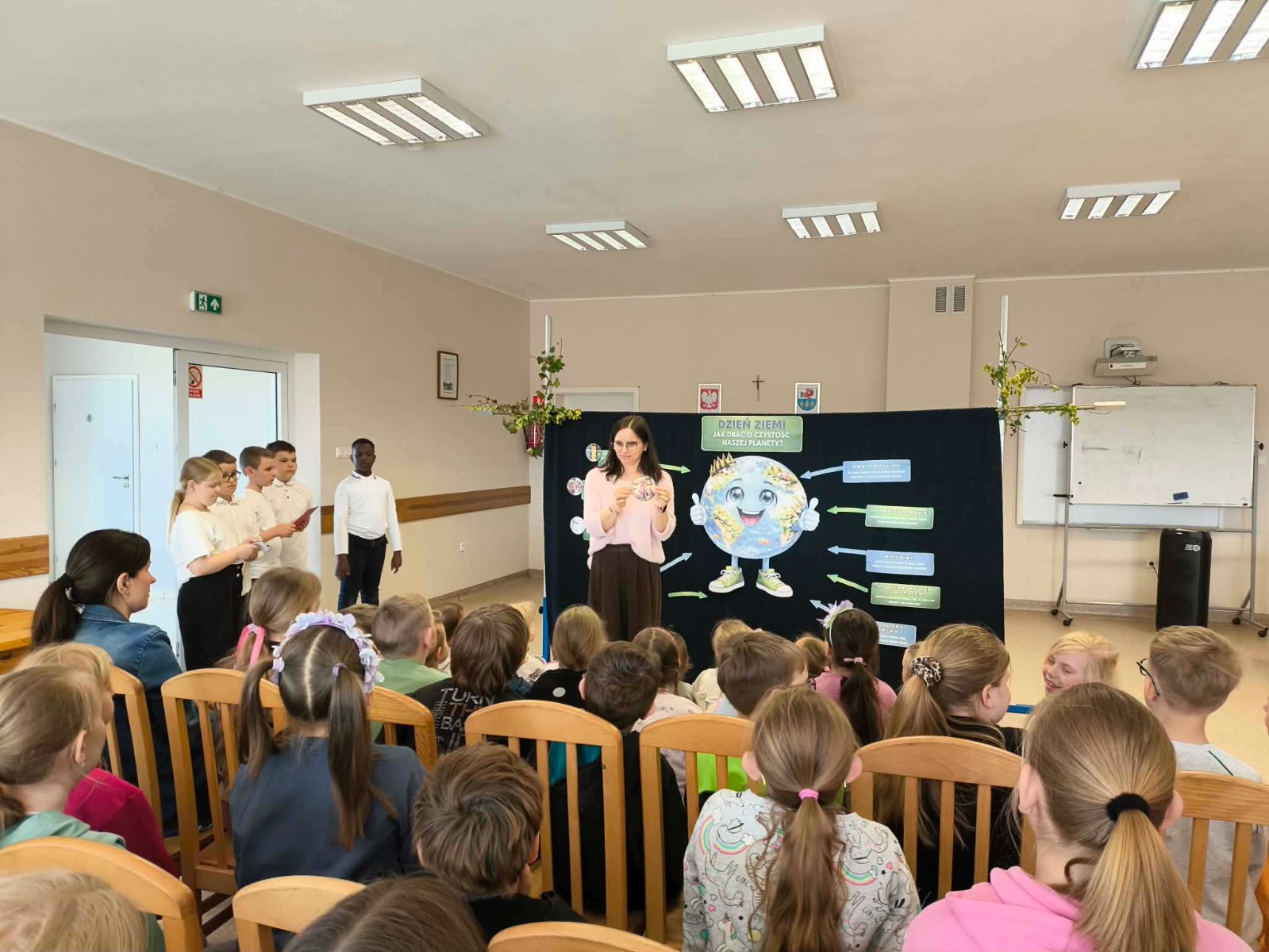 22 kwietnia obchodzimy Dzień Ziemi. W naszej szkole tego dnia także postanowiliśmy uczcić to święto. Uczniowie klasy III przygotowali krótkie przedstawienie, w którym ukazane były skutki zanieczyszczania naszej planety i jak temu zapobiegać. Wszystkim bardzo się podobało, a aktorzy otrzymali zasłużone brawa. Na zakończenie odbyło się też ogłoszenie szkolnego „Konkursu pięknego pisania”, którego celem było propagowanie wśród uczniów sztuki pięknego pisania, zachęcanie do dbania o estetykę i charakter pisania. Tegoroczne zadanie polegało na przepisaniu wiersza o naszej planecie Ziemi. Wyniki konkursu: Kategoria: klasa I- III: I miejsce: Alicja Kloskowska i Antonina Jankowska II miejsce: Natalia Janikowska i Hanna Rafińska III miejsce: Oskar Klóskowski Kategoria: klasa IV-VI: I miejsce: Milena Skiba II miejsce: Dorota Zblewska i Oliwia Bruska III miejsce: Rafał Kloskowski.
