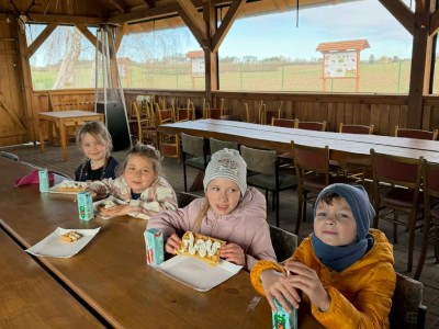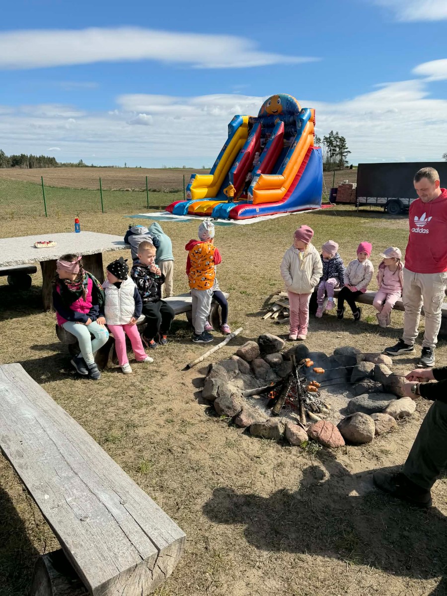 Przedszkolaki, na zaproszenie Państwa Leszczyńskich oraz Koła Łowieckiego ,,ECHO” wzięły udział w wyjeździe edukacyjnym do miejscowości Małe Chełmy. Na dzieci czekało wiele atrakcji – dmuchaniec, ścieżka edukacyjna poświęcona zwierzętom i roślinom, spotkanie z panem pszczelarzem, a także pyszne gofry. Spotkanie zakończyło się wspólnym ogniskiem, które dostarczyło wszystkim dużo radości i niezapomnianych wrażeń. Dzieci otrzymały także odblaskowe opaski z logo Koła Łowieckiego oraz kolorowanki. Bardzo dziękujemy za zaproszenie!