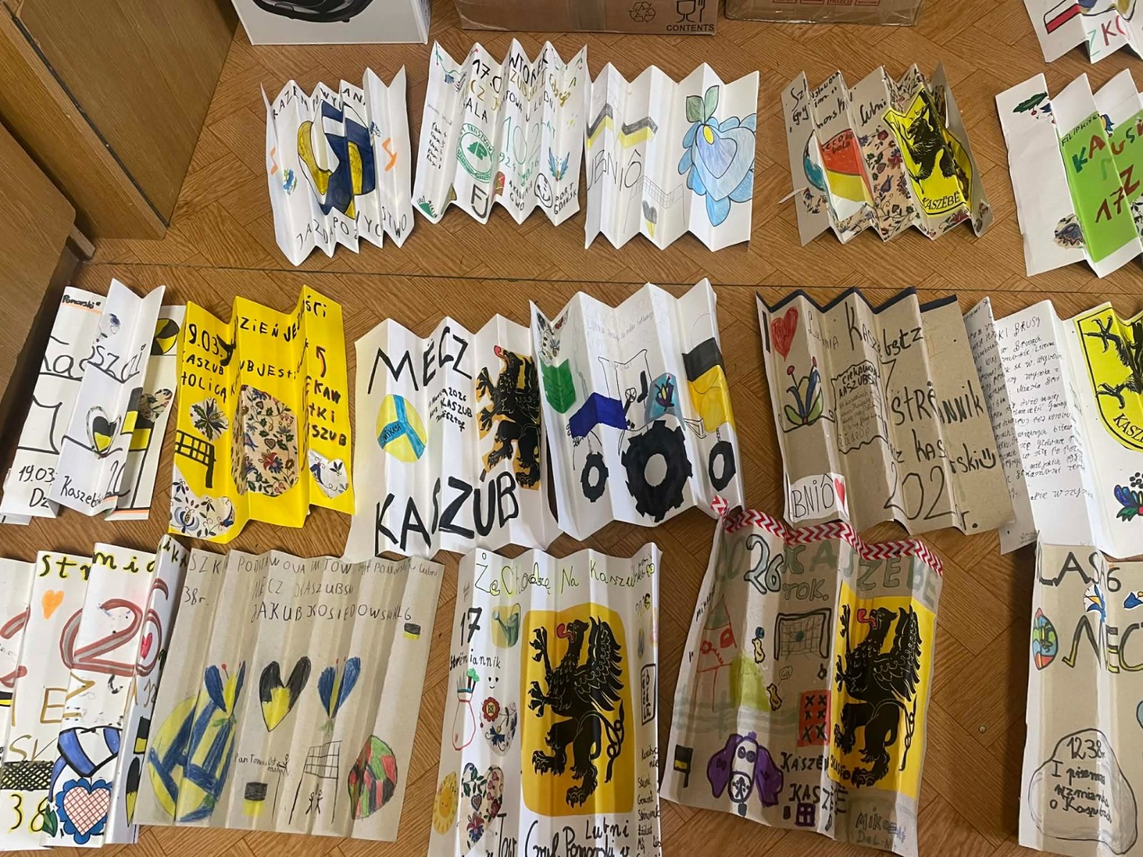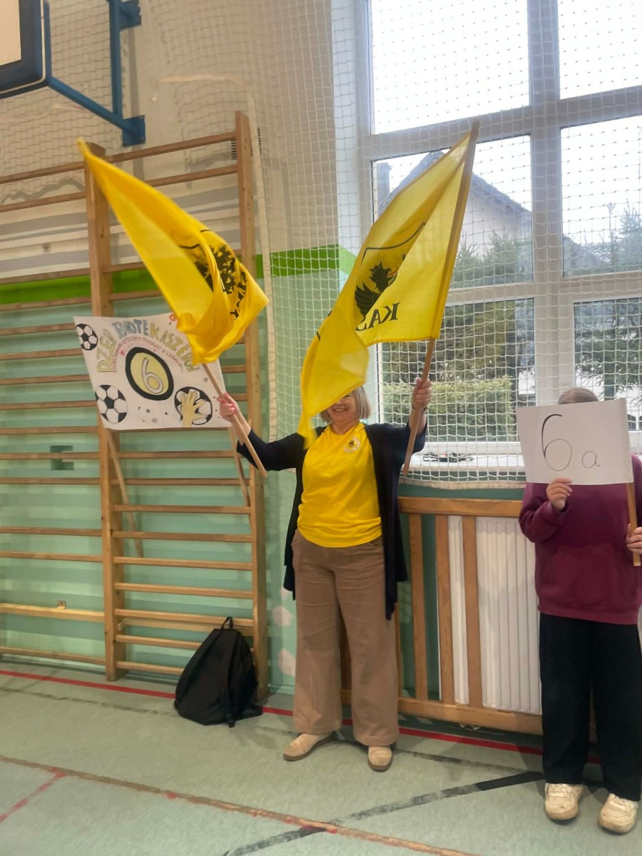 We wtorek 17 marca 2026 r. odbył się wyjątkowy „Mecz Kaszubski”, podczas którego obchodziliśmy również Dzień Jedności Kaszubów w naszej szkole. Uczniowie poszczególnych grup kaszubskich zaprojektowali własne papierowe klaskacze, które są nieodzownym atrybutem każdego fana sportu. Uczniowie zaprezentowali ogromną kreatywność, wykazując się niezwykłą wyobraźnią oraz pomysłowością. Z jednej strony kartki promowali nasze wydarzenie oraz szkołę, zaś z drugiej przedstawiali nasz wyjątkowy region - Kaszuby. Podkreślili również, że Święto Kaszubów jest obchodzone corocznie 19 marca na pamiątkę pierwszej pisemnej wzmianki o Kaszubach, która pojawiła się w bulli papieża Grzegorza IX z 19 marca 1238 roku. Najoryginalniejsze klaskacze wykonały Dorota Kosak Główczewska z kl. 6 oraz Aleksandra Rogala z kl. 7. Dziękujemy p. Monice Trawickiej za pomoc w wyborze prac. Docenione zostały postawy aktywnego kibicowania – bezkonkurencyjne wyróżnienie otrzymała p. Barbara Narloch wraz z klasą 6.